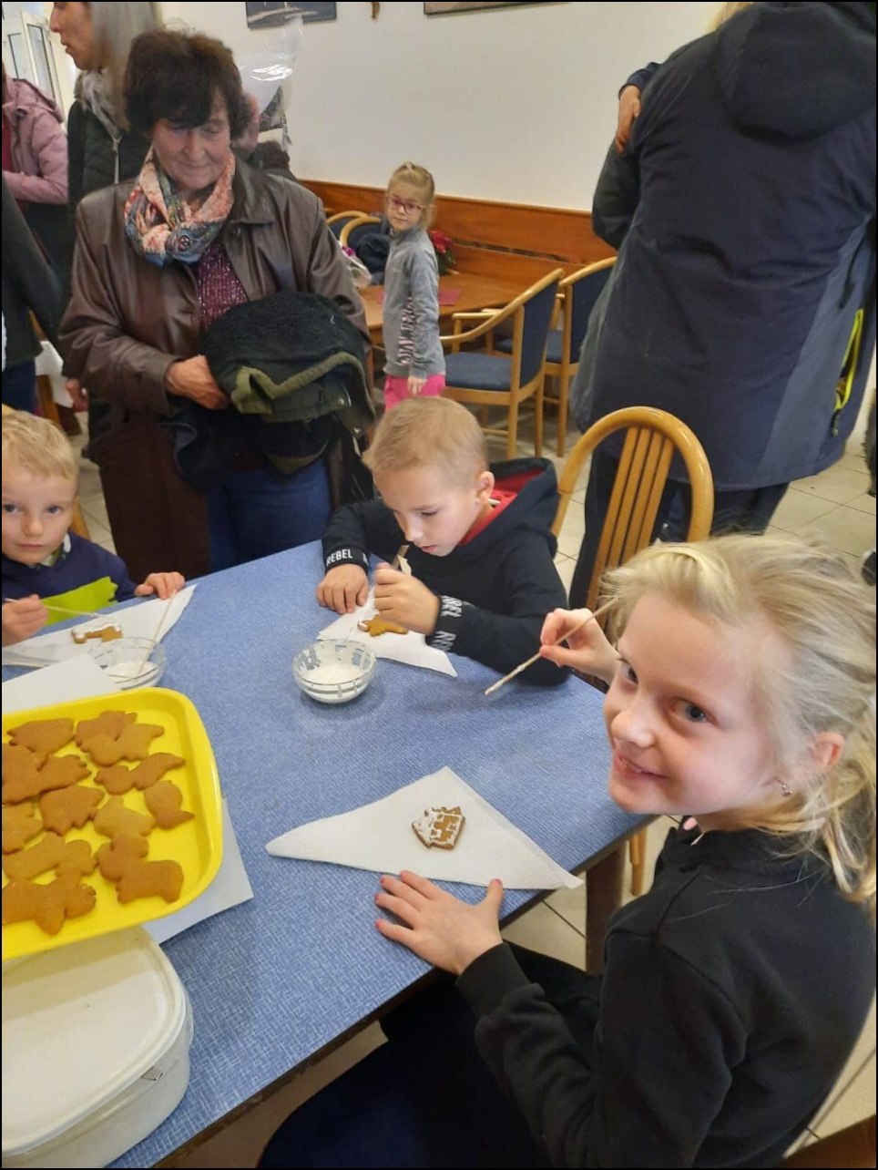 Během Adventních trhů, které se konaly 26. 11. 2022 měly děti možnost využít našeho tvořivého koutku pod vedením paní Ivany Špryňarové a Zuzany Špryňarové. Naše dlouholeté spolupracovnice si pro děti připravily výrobu papírového Ježíška, zdobení perníčků, nebo vytvoření vlastního dopisu pro Ježíška. V průběhu akce se u našeho stánku vystřídalo spoustu dětí a všem se jejich tvoření velice povedlo!