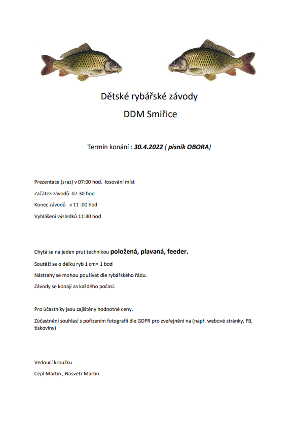 Vše potřebné najdete v příloze. Přihlášky můžete doručit osobně do DDM nebo poslat naskenované paní Klikošové na mail: klikosova@ddmsmirice.cz
