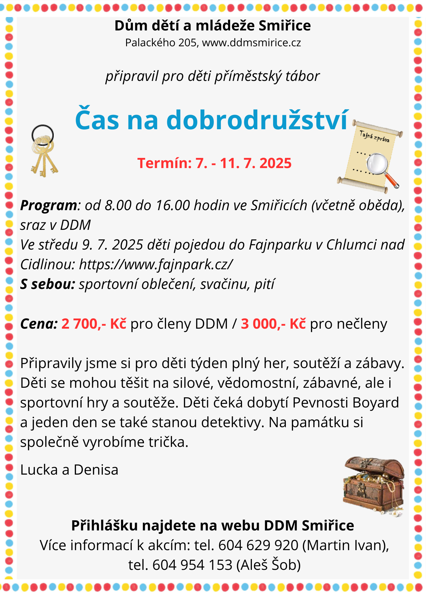 Přihlášku a poplatek vybíráme osobně v DDM nebo můžete poslat mailem naskenovanou přihlášku a peníze na účet DDM Smiřice: