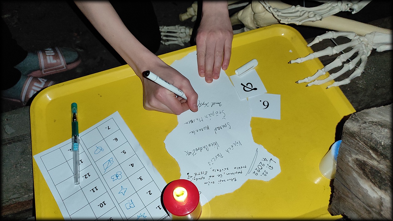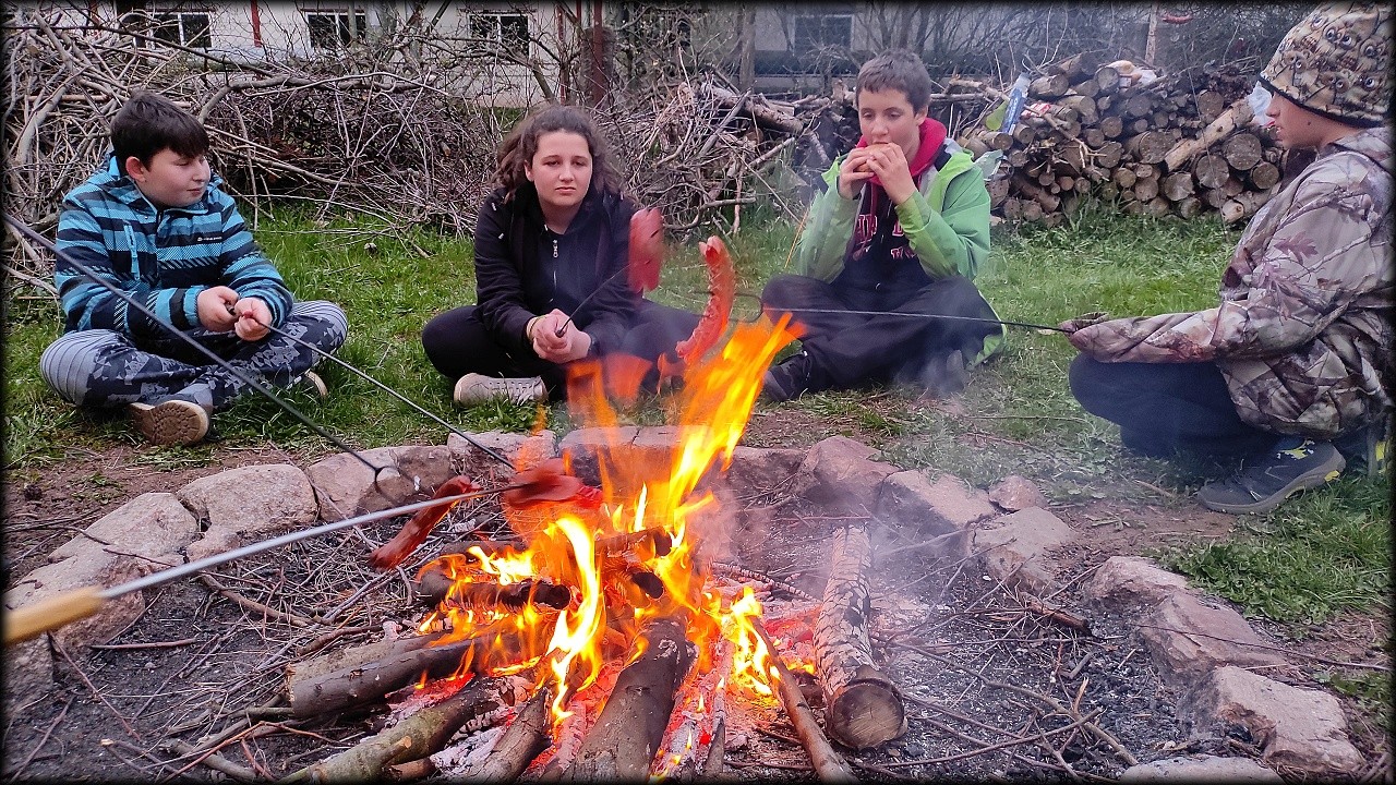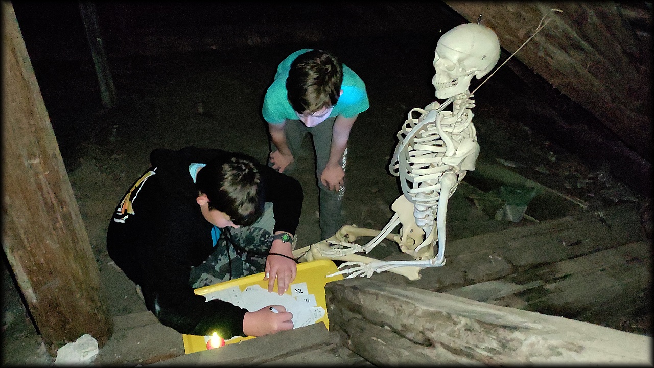 Tentokrát jsme přespali ve škole. Na školním pozemku jsme si připravili večeři na ohni a za svitu baterek jsme se porozhlédli po nočním životě. V noci nás čekala stezka odvahy v temné budově školy!