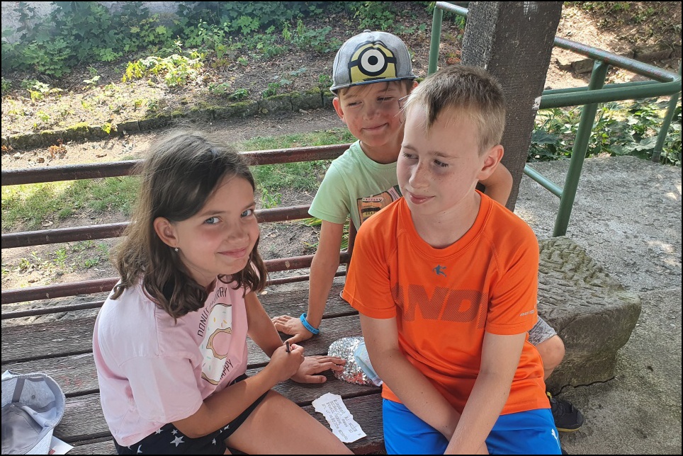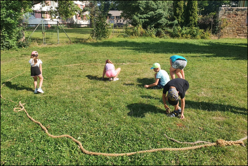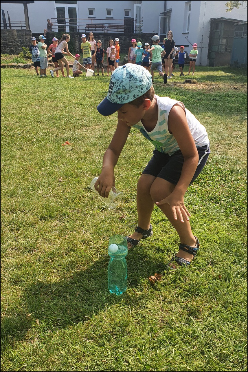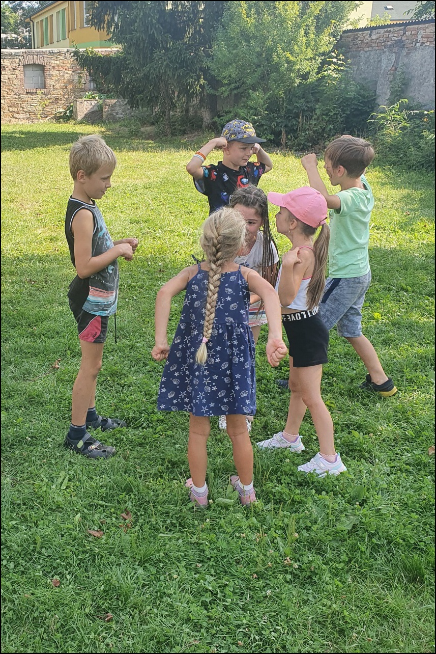 Čtvrtek uběhl jak voda při řešení záhady ztráty maskotů. Vše nakonec dopadlo dobře a děti tajemného zloděje odhalily. Odpoledne proběhly soutěže na motivy Pevnosti Boyard.