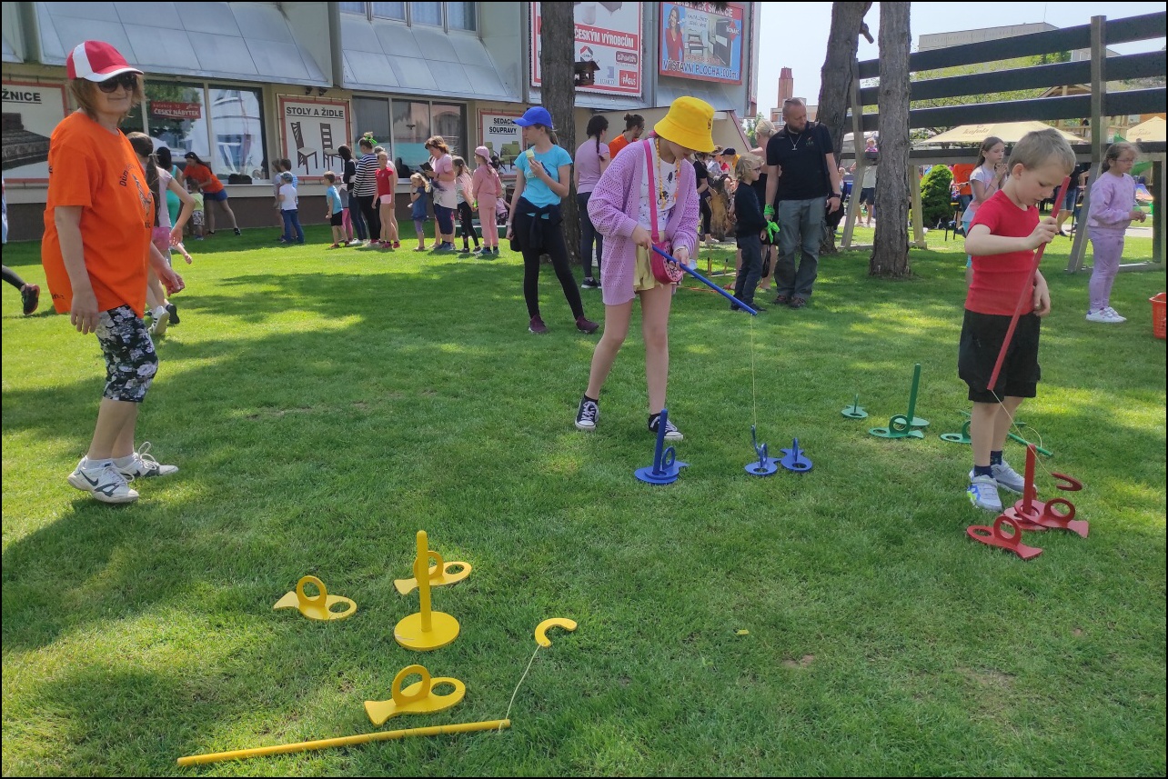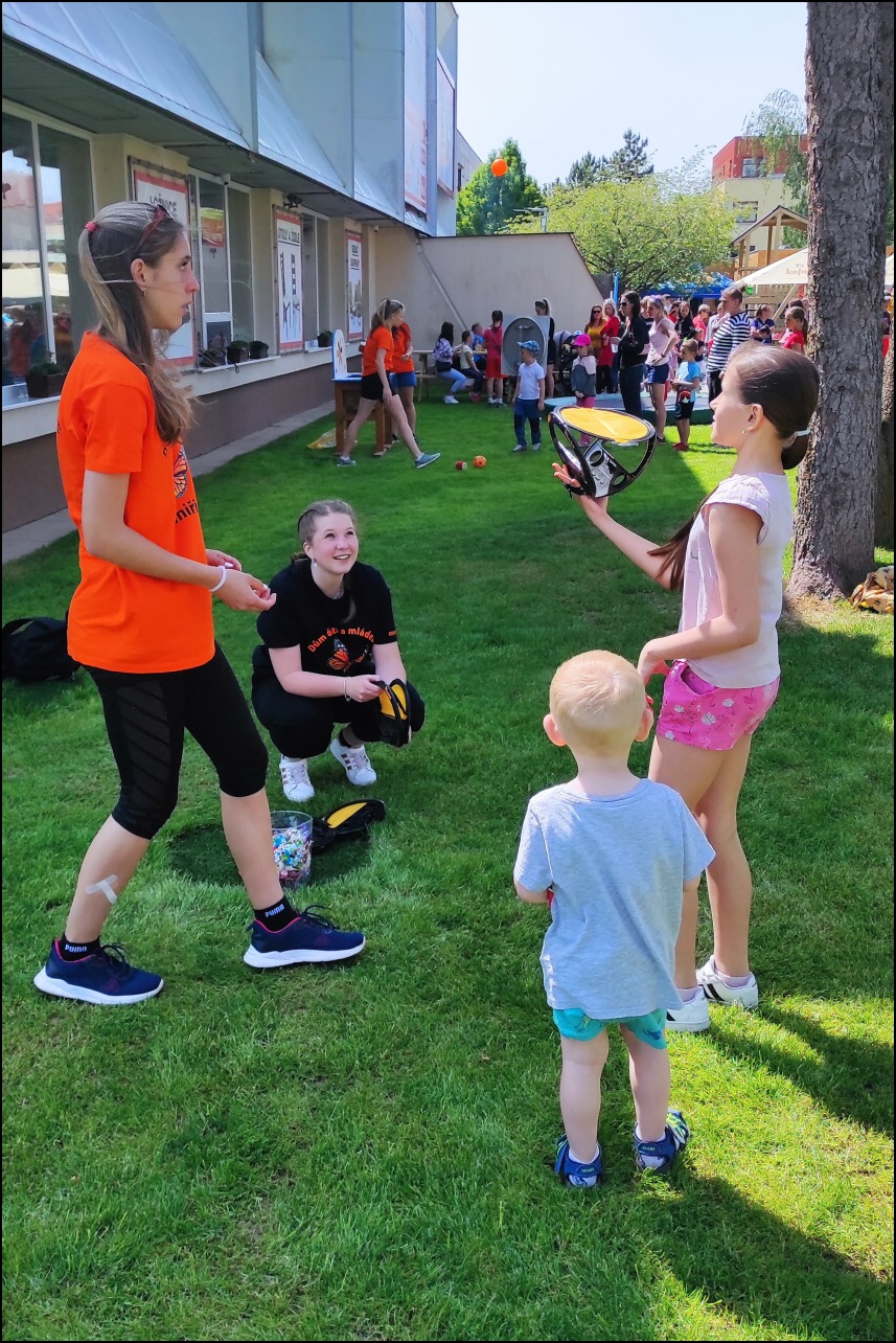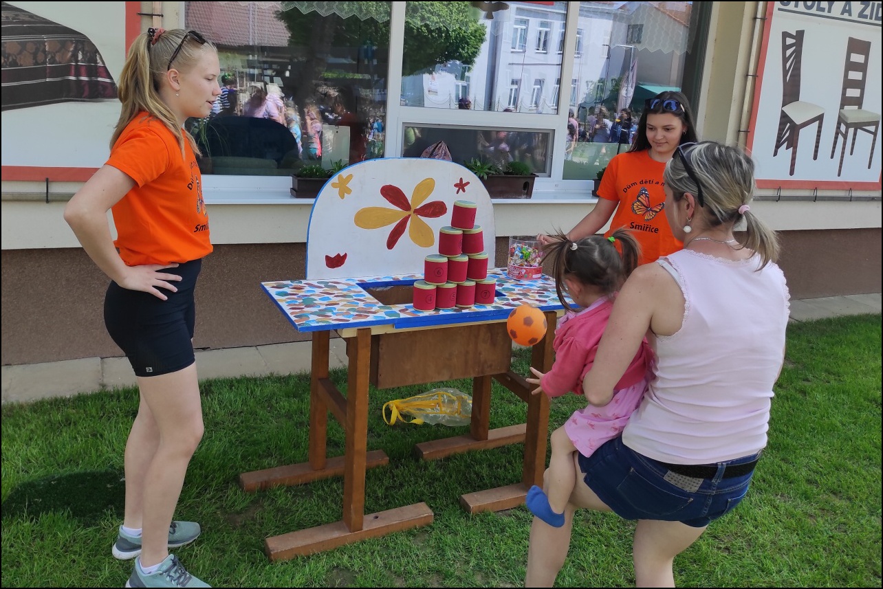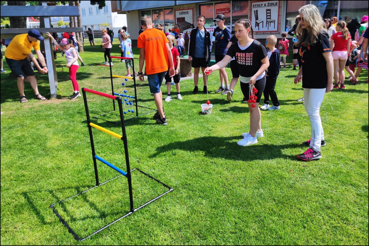 Poté následovaly oblíbené soutěže na stanovištích, při kterých si děti vyzkoušely hod kroužků, hod míčem na cíl, lovení rybiček, laserovou střelnici, vystřelovací hry s míčky nebo hod na plechovky. Dále si mohla děvčata nechat udělat copánky od šikovných vedoucích kroužku Moderního tance, nebo využít malování na obličej.