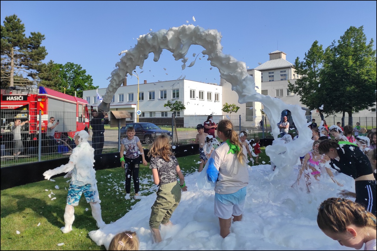 Na závěr celé akce se mohly děti vyřádit v pěně, kterou zajistili pro děti robrovolní hasiči.