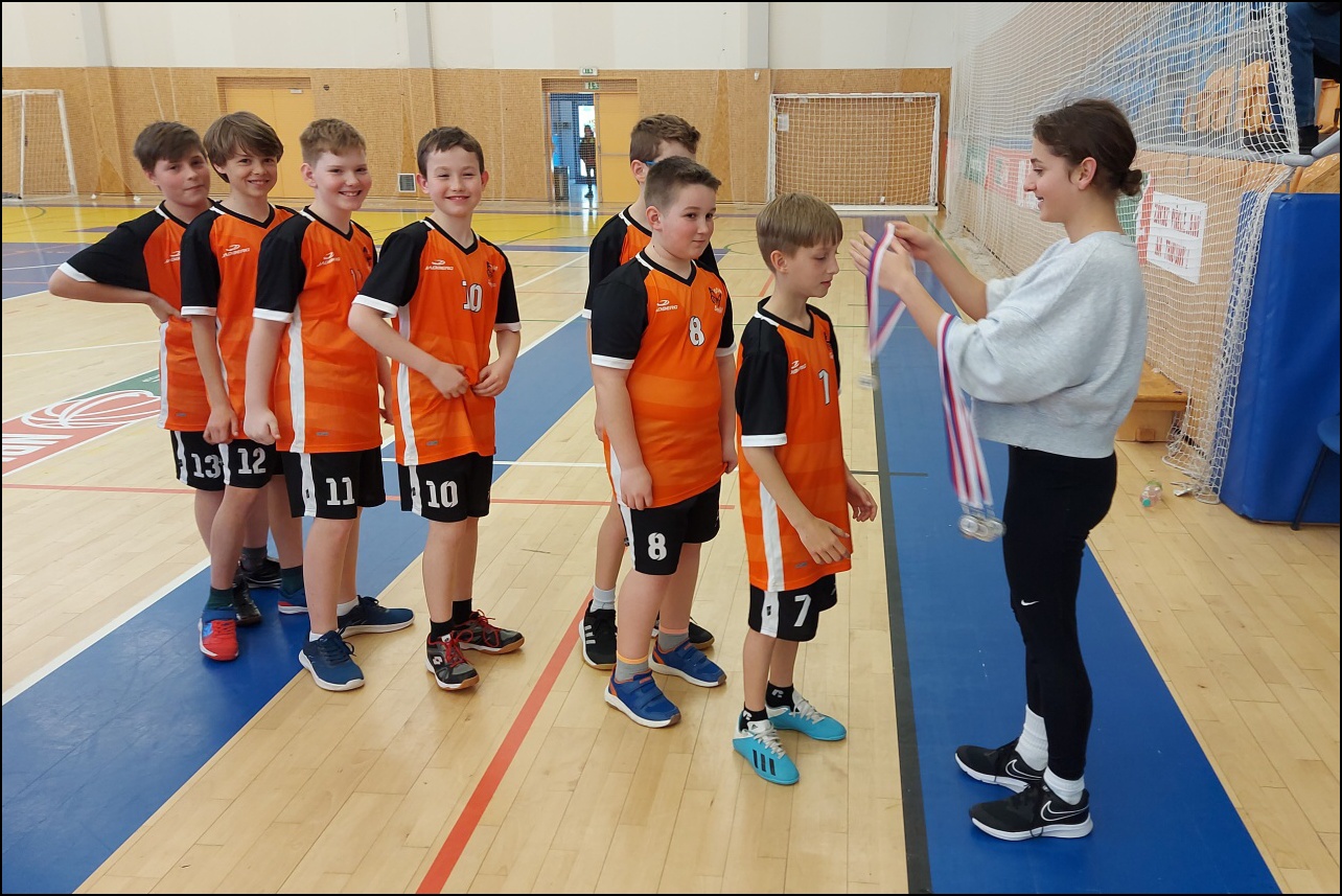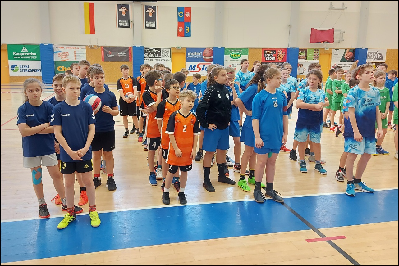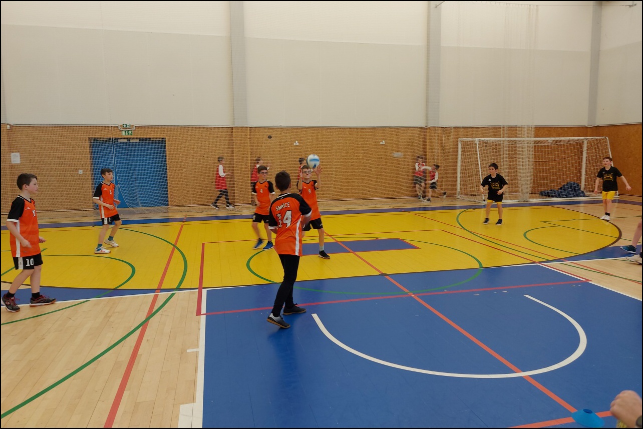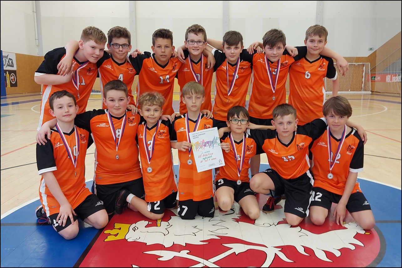 Jednalo se o II. kategorii (4. - 5. třída). Nejdříve byla odehrána základní skupina, ve které naši chlapci nenašli přemožitele a postoupili tak do finálové skupiny, která se odehrála následně ve stejné hale. V této skupině čekaly na kluky 4 zápasy o 1 postupové místo do krajského kola. První dva zápasy dopadly výborně! Dvě výhry zařadily náš tým do pozice aspirantů na postup. Bohužel v souboji o postup chlapci s dobře hrajícím soupeřem nedokázali zvítězit. I přes počáteční zklamání však mohou být nad míru spokojeni, jelikož obsadili 2. místo z celkového počtu přibližně 20 škol!!! Reprezentovali: David Šurin, Filip Lžíčař, Václav Andrýs, Filip Cepl, Vojtěch Zbořil, Filip Kolman, David Adamus, Ondřej Pleskot, Max Votroubek, Samuel Špetla, Mikuláš Prokop, Eliáš Veverka, Jaroslav Jágr, Filip Středa.