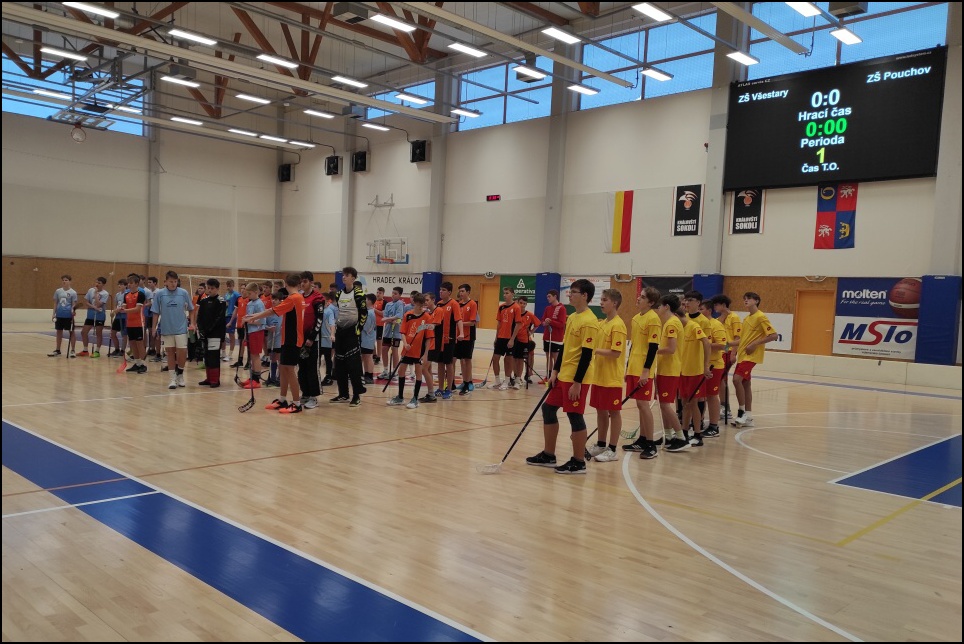 Také starší chlapci po postupové jízdě na domácí palubovce vyrazili do sportovní hale ve Třebši. Zde se utkali celkem s pěti celky ze základních škol.