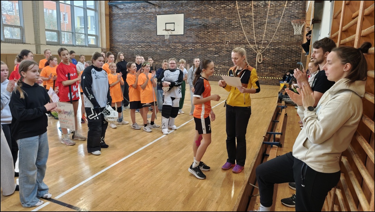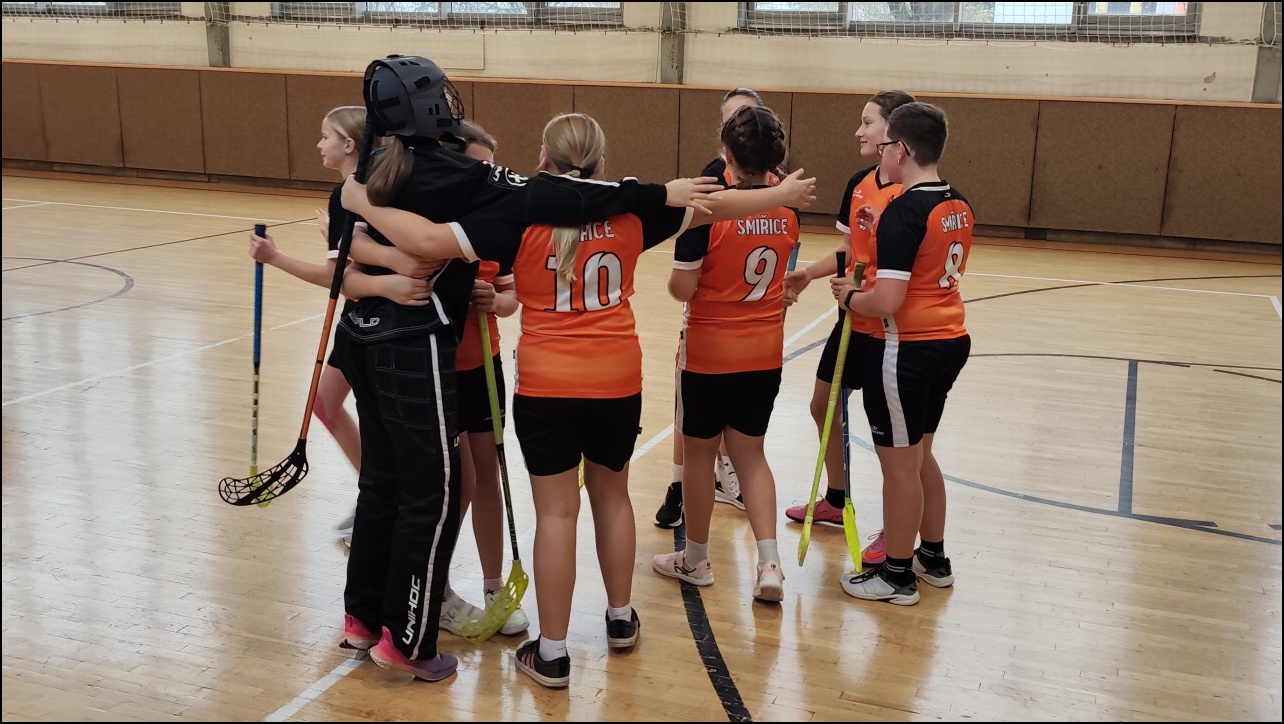 Dívky vyrazily do HK, kde se utkali nejprve ve skupinové fázi. Jelikož se jedná o nejmladší kategorii, jeli jsme na turnaj bez jakýchkoliv očekávání. Nechtěli jsme však dát naši kůži zadarmo a všechna děvčata k tomu takto i přistoupila! V prvním utkání jsme sice podlehli suverénní ZŠ M. Horákové 0:4, to nás ale nezastavilo a naše výkony se každou minutou zlepšovaly. V dalších dvou utkáních dívky dokázaly uhrát výhru a remízu a o postupujícím se tak rozhodovalo v posledním zápase skupiny. Tento zápas se našim florbalistkám povedl na jedničku a po výhře 4:1 obsadily druhou a postupující pozici!