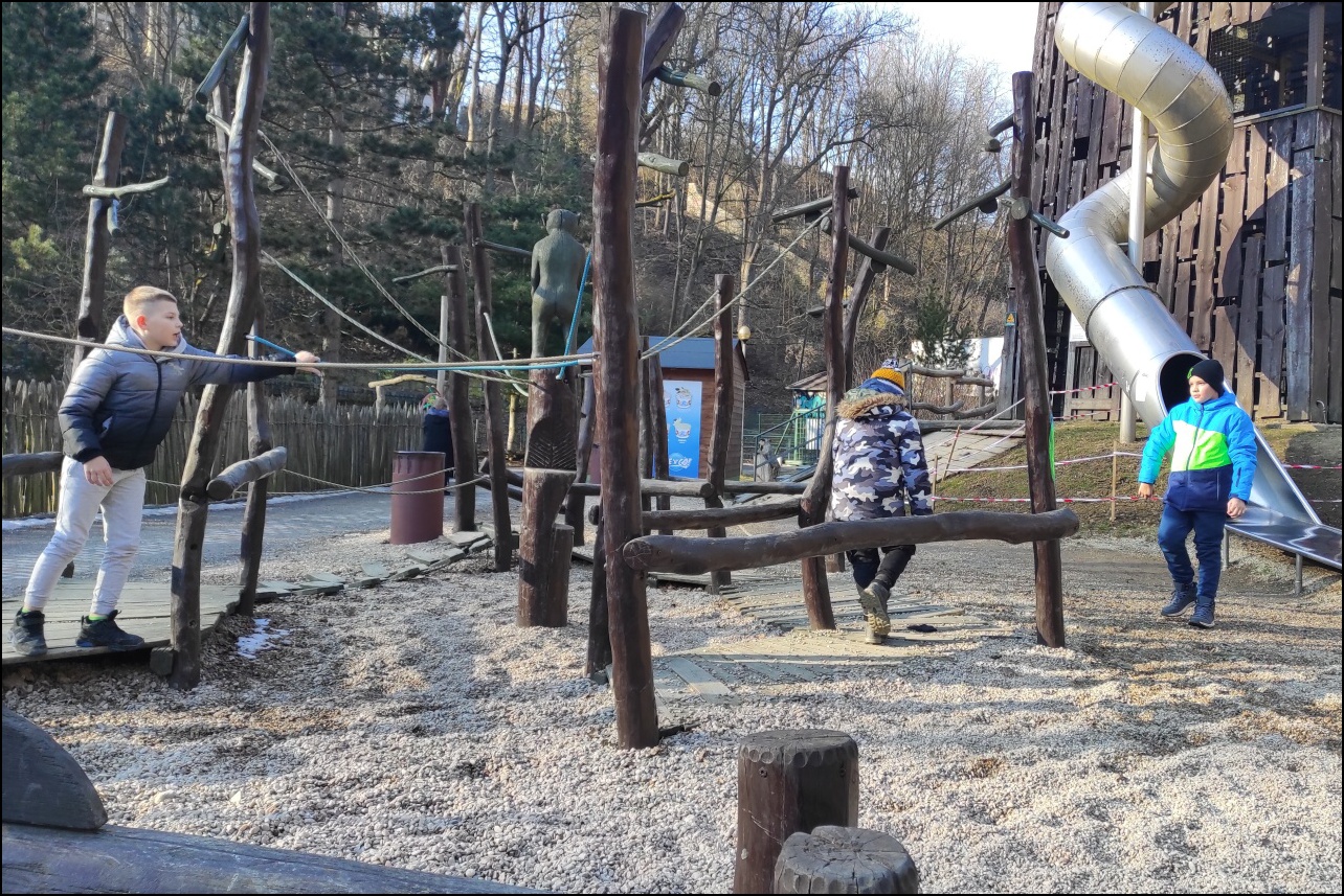 Středeční závěrečný den nás čekal zábavní park Robinson. Už po příchodu jsme tušili, že to bude zlatý hřeb celého pobytu v Jihlavě a tak se také stalo. Spoustu prolézaček, trampolín, skluzavek a dalších aktivit jsme mohli zdolávat stále dokola a objevovat nové a nové způsoby i trasy.