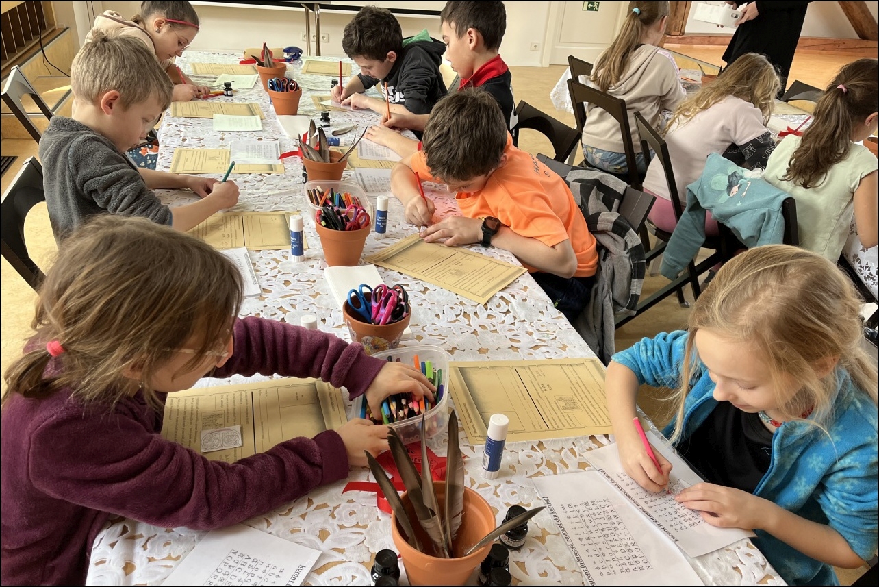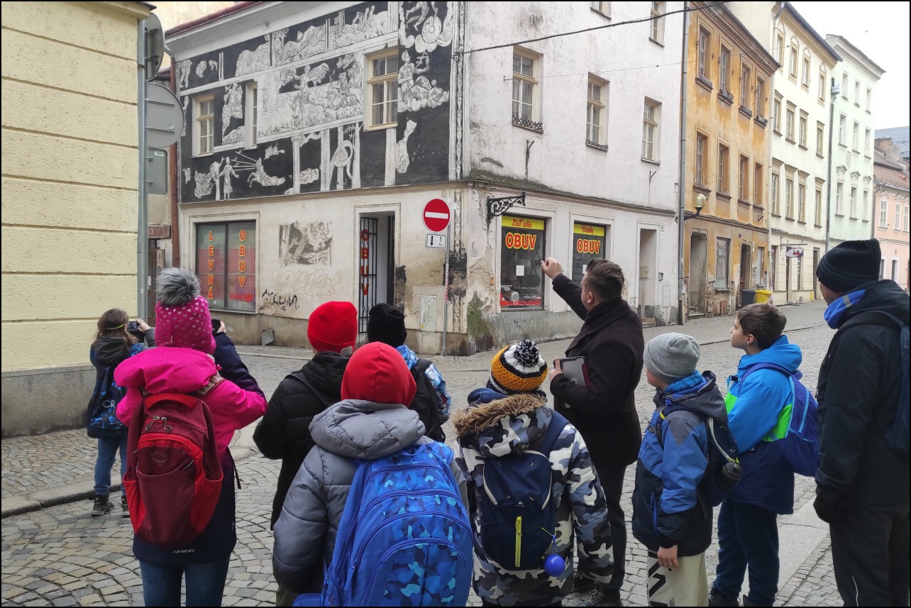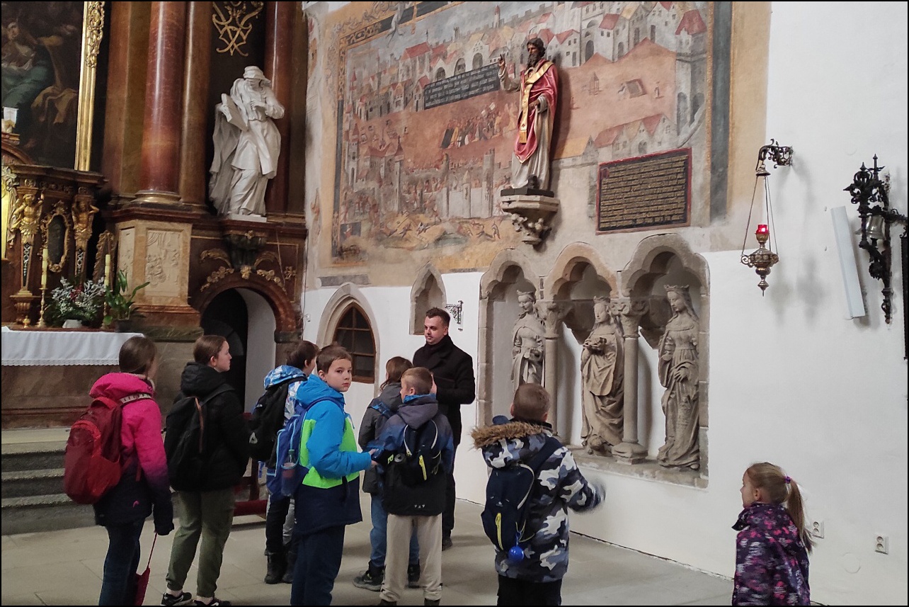 Po dopoledním tvoření jsme se přesunuli na oběd do jídelny v Holohlavech a posilněni dobrým jídlem jsme vyrazili za poznáním do muzea v Jaroměři. Čekal nás zajímavý edukační program o historii písma, kde jsme si vyzkoušeli psaní klínovým písmem a také psaní brkem. Nechybělo ani drobné „umělecké“ zašpinění tuší, ale nakonec jsme všichni úspěšně prošli zkouškou psaní! Každý jsme dostali jakýsi „pergament“, na kterém se objevovali i záludné otázky pro zvídavé hlavy. Jako bonus jsme si ještě prohlédli výstavu hraček, která v muzeu právě probíhala.