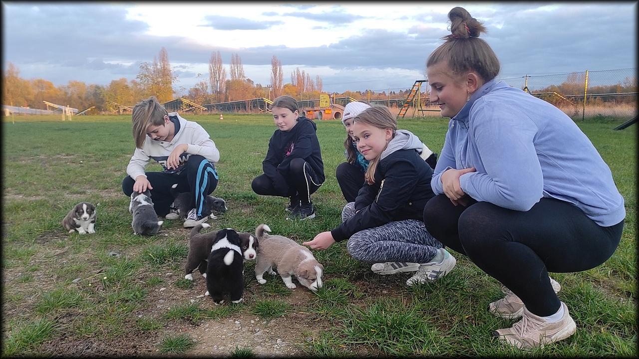 Fotografiemi se vracíme ke kroužku na začátku listopadu, kdy se děti učily, jak se chovat k nedávno narozeným štěňátkům. Byl to zážitek! A ta štěňátka měla doslova šlechtická jména!