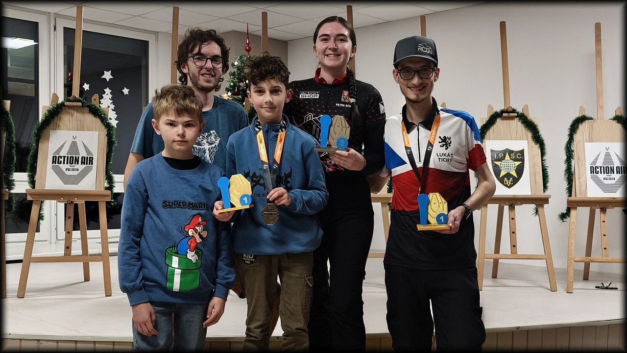 Střelecká přípravka se schází každý pátek, letos v mimořádném počtu 18 dětí! Na poslední kroužek v tomto roce jich přišlo 12 a na rozloučenou s rokem 2025 jim vedoucí kroužku připravili střeleckou soutěž o hodnotné ceny s těmito výsledky: