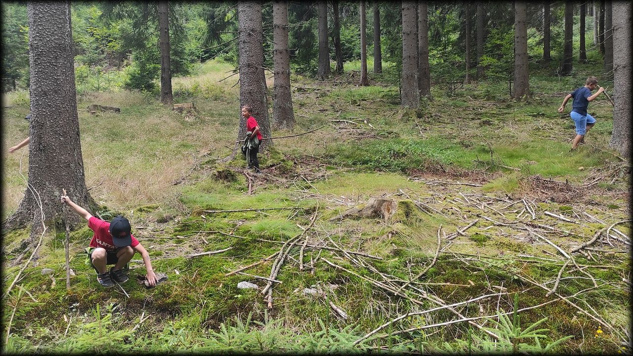 ÚTERÝ: Dopoledne nás čekal postřehový závod v lese, trasa byla dlouhá (2,5 km)! Našlo se hodně pozorných závodníků, kteří našli všechny obrázky. Odpoledne se konal desetiboj z netradičních sportů o medaile, večer byl táborák s buřtíky a náročný den jsme zakončili statečně stezkou odvahy.