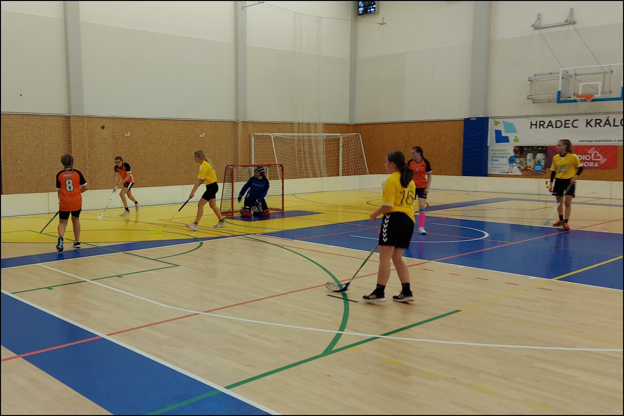 Posledním turnajem ve florbale s naší účastí bylo okresní finále dívek IV. kategorie, které se uskutečnilo ve sportoní hale Třebeš v Hradci Králové. Naši školu reprezentovaly tyto dívky: Natálie Jarinová, Marie Trnová, Denisa Duchoňová, Marika Wahle, Zuzana Wahle, Adéla Burianová, Michaela Spurná, Sofie Hažvová, Zuzana Motyčková a Sára Duchoňová. Postupně je čekaly 4 zápasy. Se ZŠ Kukleny, s nimiž vyšli bodově i gólově naprázdno, se skóre zastavilo na hodnotě 0:3. V duelu se ZŠ Svobodné Dvory se ukázala velká kvalita dvou hráček v týmu soupeřů, které určily výsledek 1:8. Děvčata nechtěla nic vypustit a se ZŠ Sever po výborném výkonu brala vítěztví 2:1. Poslední zápas se ZŠ Nechanice dopadl po smolném gólu bohužel pro naše reprezentantky nakonec 0:1.