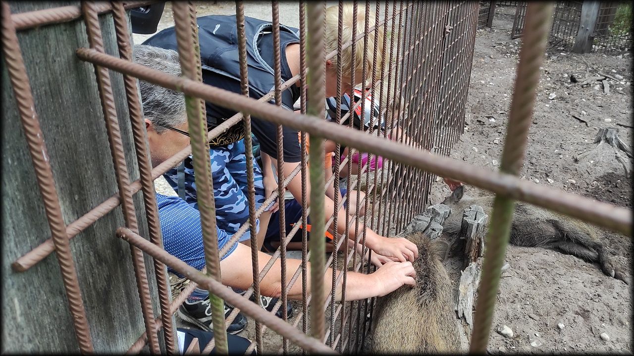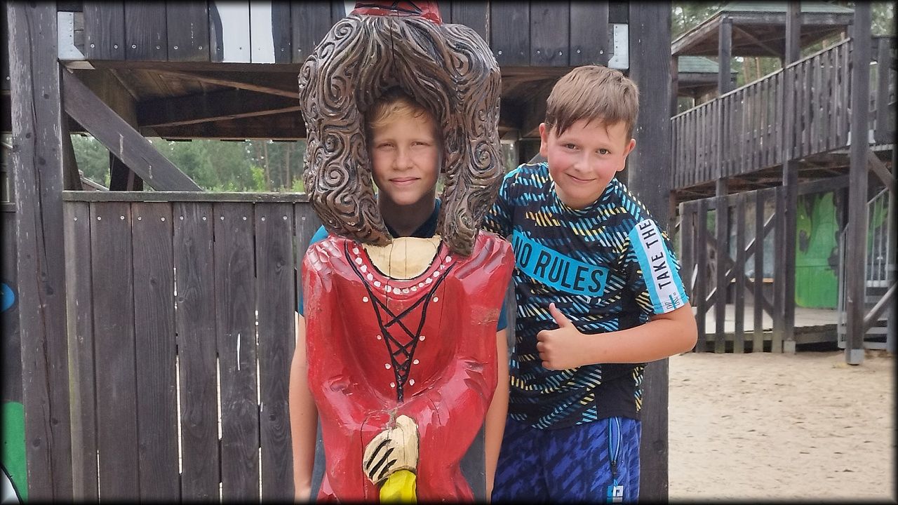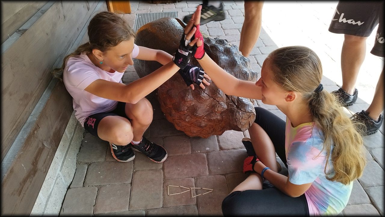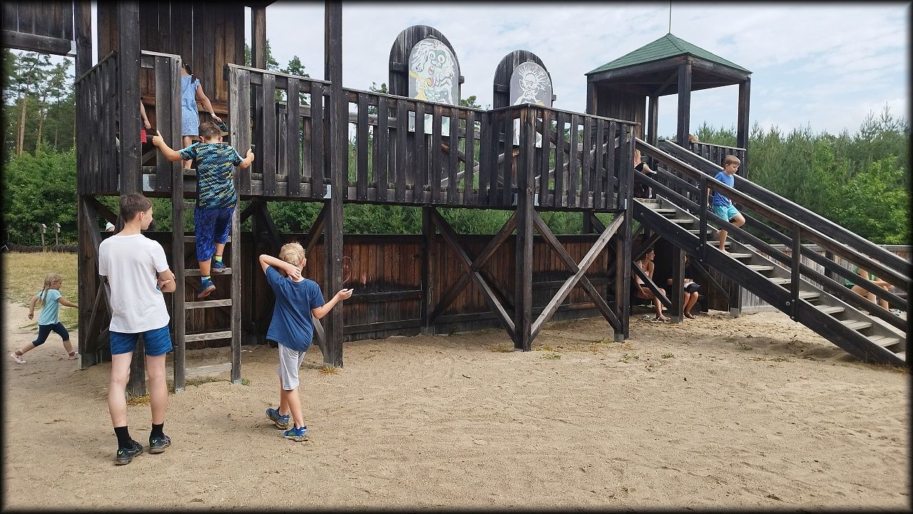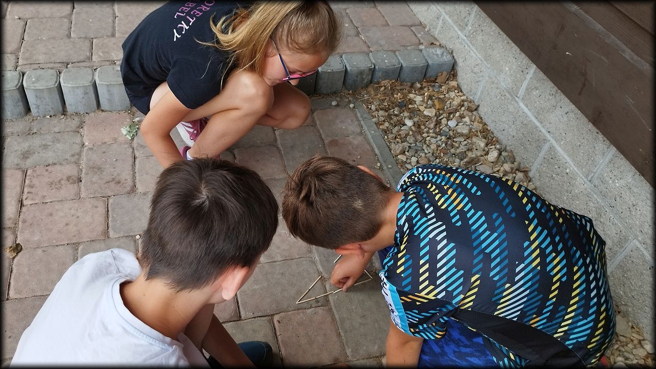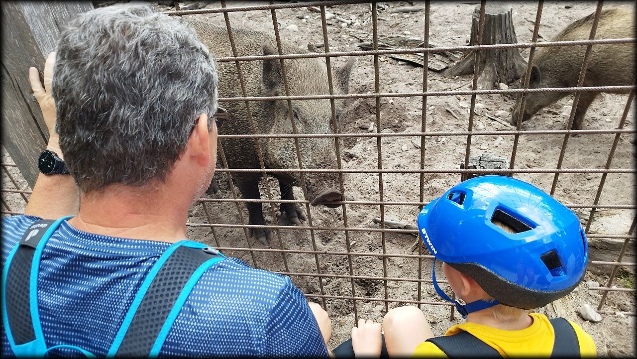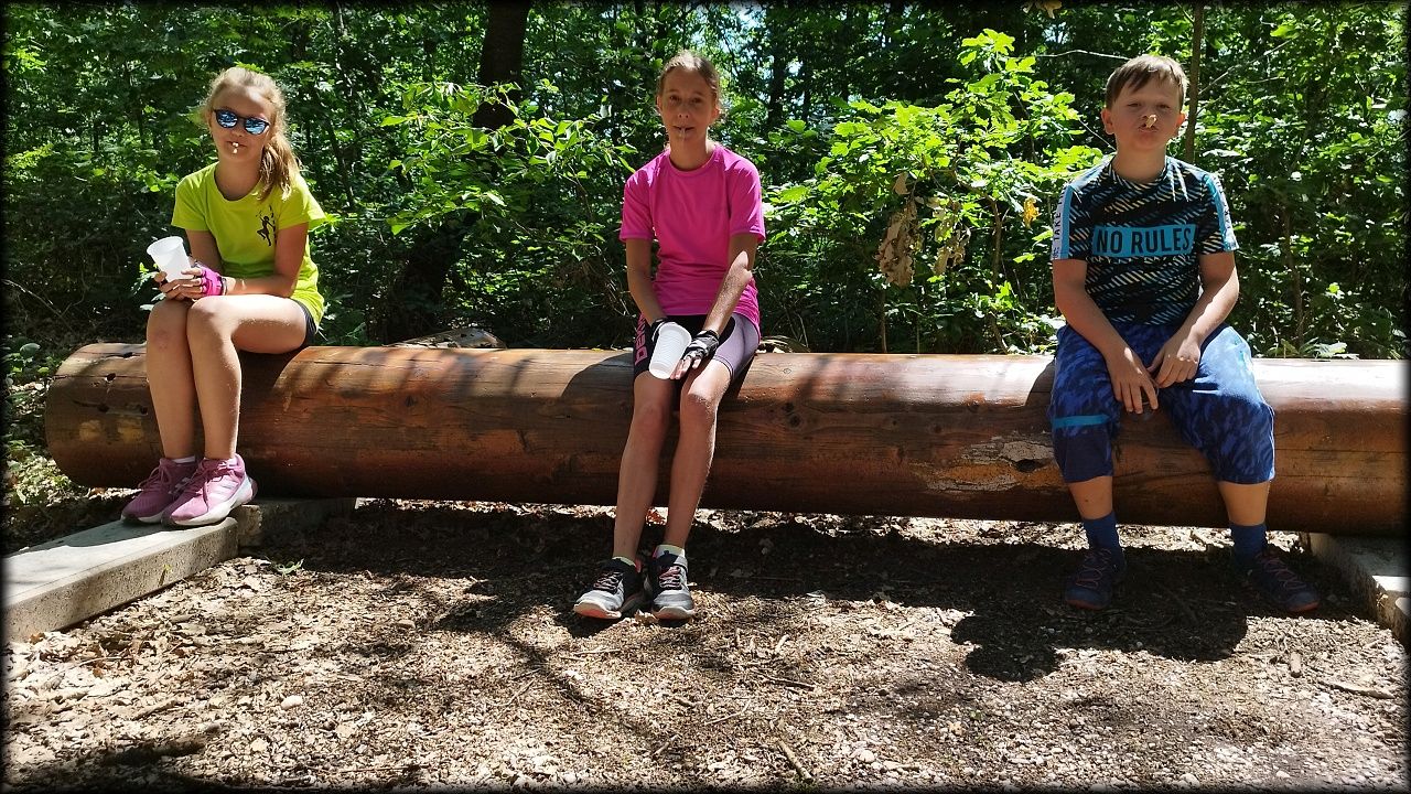 ČTVRTEK: Asi zabloudíme! Dnes trasu přes průjezdné body vybírají samy děti. Tak jedeme vzadu na konci pelotonu podle nich. Občas děti samy zastaví a ubezpečí se podle mapy, zda jedeme správně. Jen jednou, na začátku, jsme se vraceli. U rybníku Kříž zjišťujeme, jak vypadá budka pro netopýry a vidíme douglasku, u nás vzácný severoamerický strom. Je to ještě stromeček, má jen 100 let a 35 metrů. Pak jedem dál pohladit si divoká malá prasátka a daňky. Jeleny vidíme jen zdálky. Přijíždíme na občerstvení na Mazurových chalupách. Celý den hrajeme hlavolamy ze sirek, i přes mírné protesty, že jsou prázdniny, musí děti přemýšlet. A přes Výskyt hurá na oběd. Když se řekne dětem toto slovo, jízda se zrychluje. Dnes je přírodní kuřecí plátek se sýrem a rajčaty a hranolky. Cestu domů přes Malšovice už děti znají samy. Pochvala pro děti za práci s mapou!
