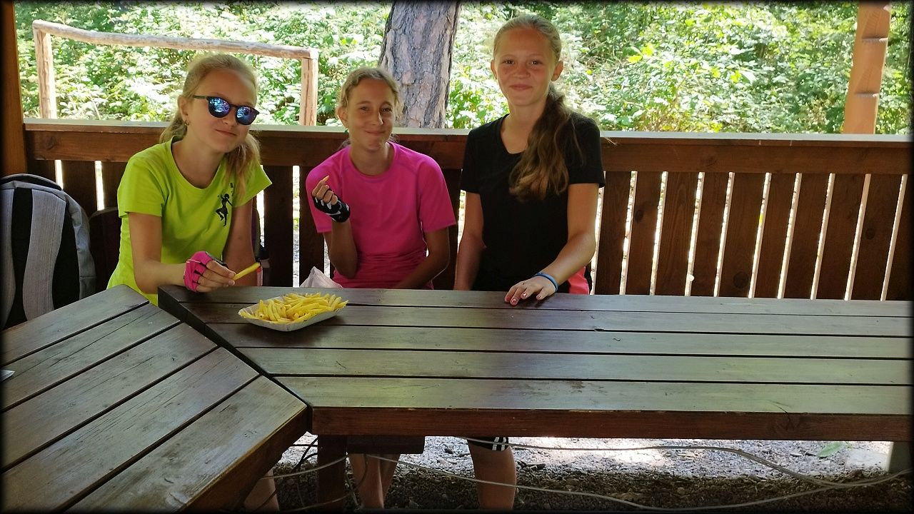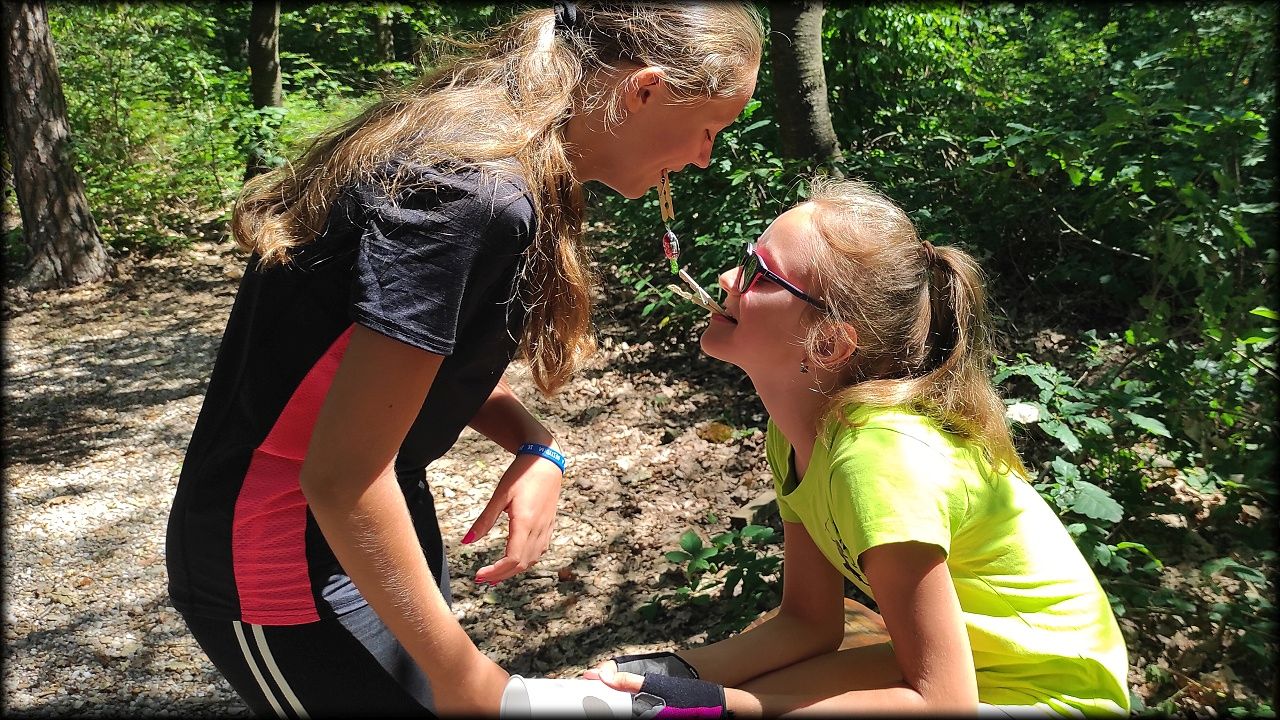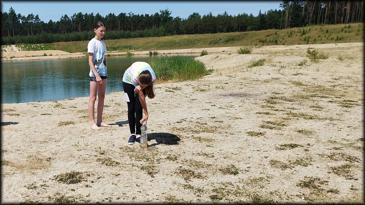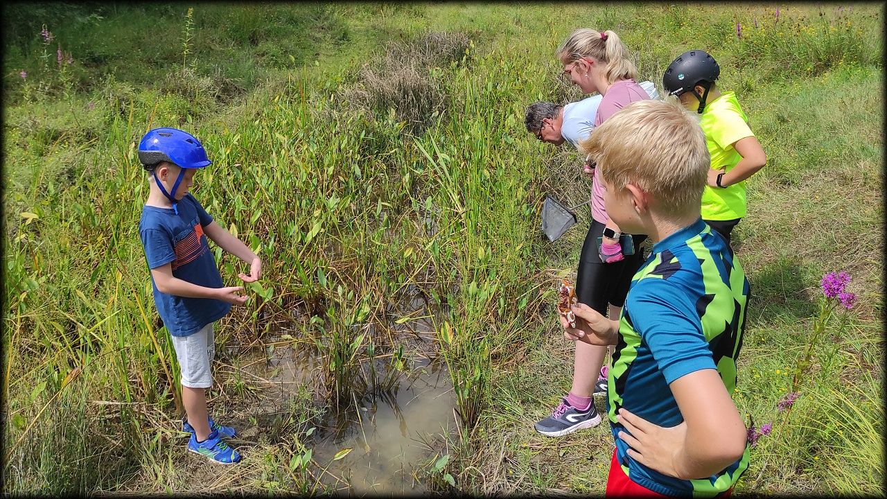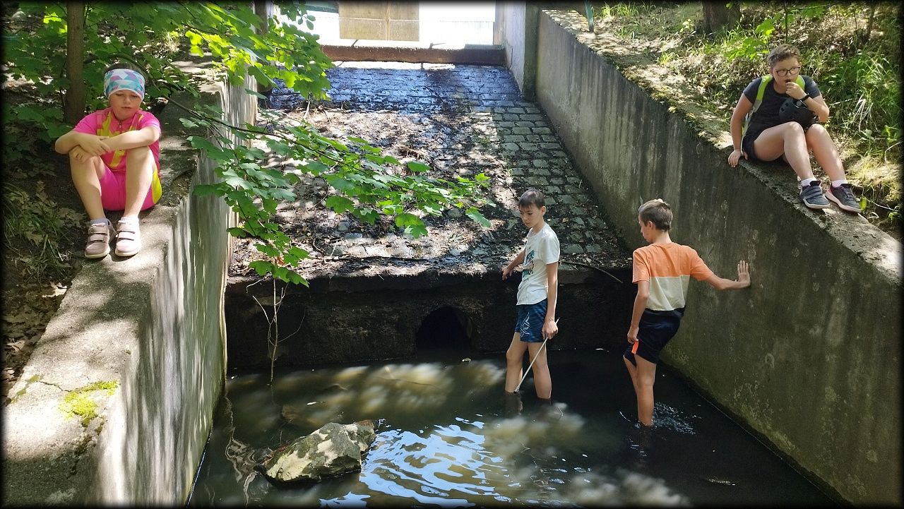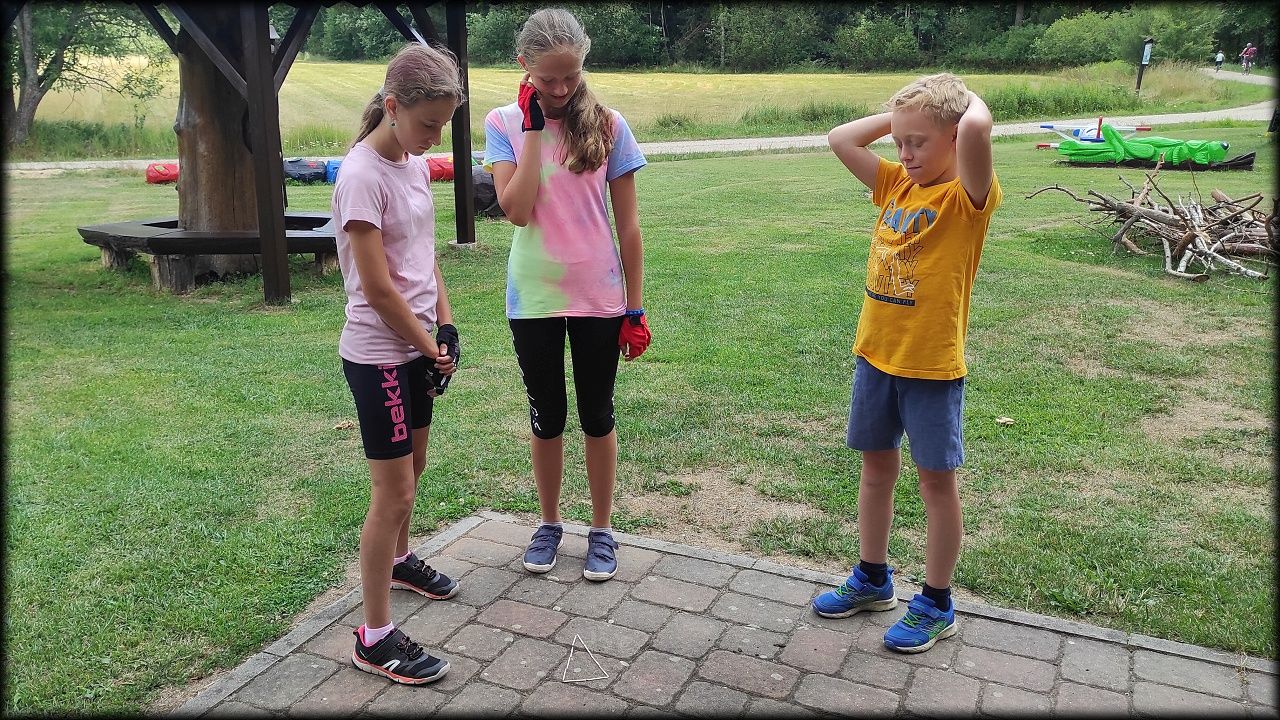 PONDĚLÍ: Po seznamovací hře jsme vyjeli do přírodního parku Na Plachtě, kde jsme do sítěk a do rukou ulovili různé živočichy, žabičky, pulce, dokonce jsme měli štěstí i na larvu čolka velkého. Pak jsme se vydali na krátkou zastávku na hradiště, kde jsme se snažili určovat zvířecí stopy. Cestou jsme si vyzkoušeli základy Geocachingu. K obědu byl řízek s bramborovou kaší a osvěžili jsme se vykoupáním. Ideální den na rozjezd.