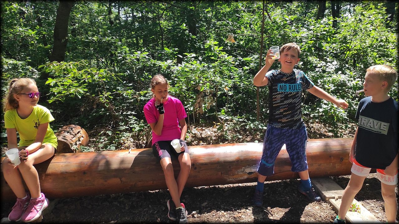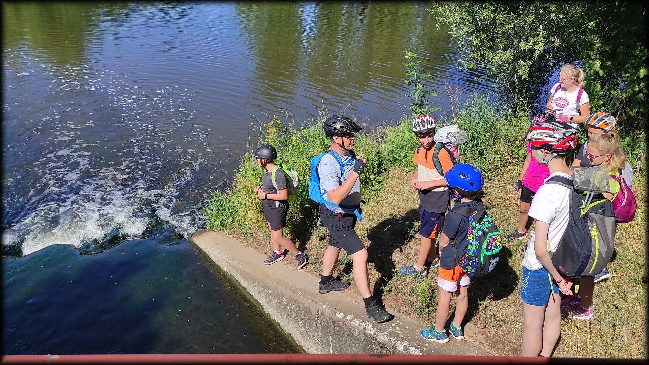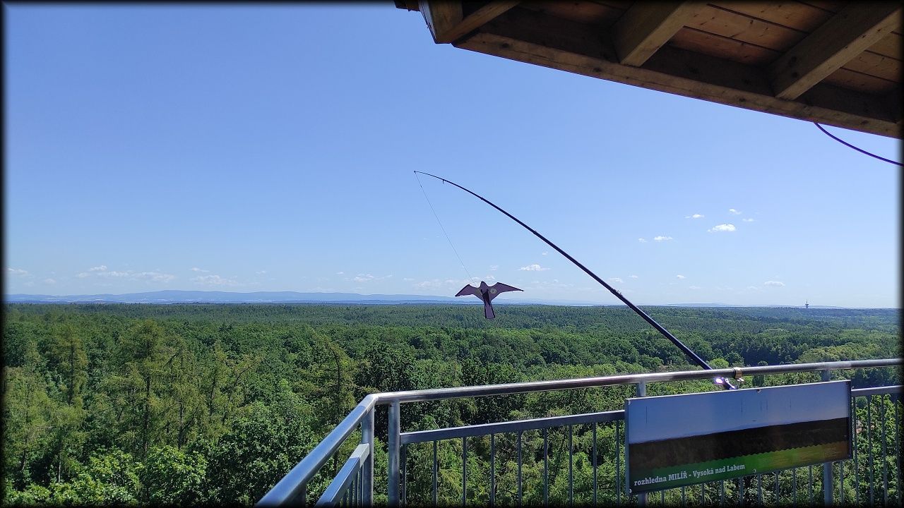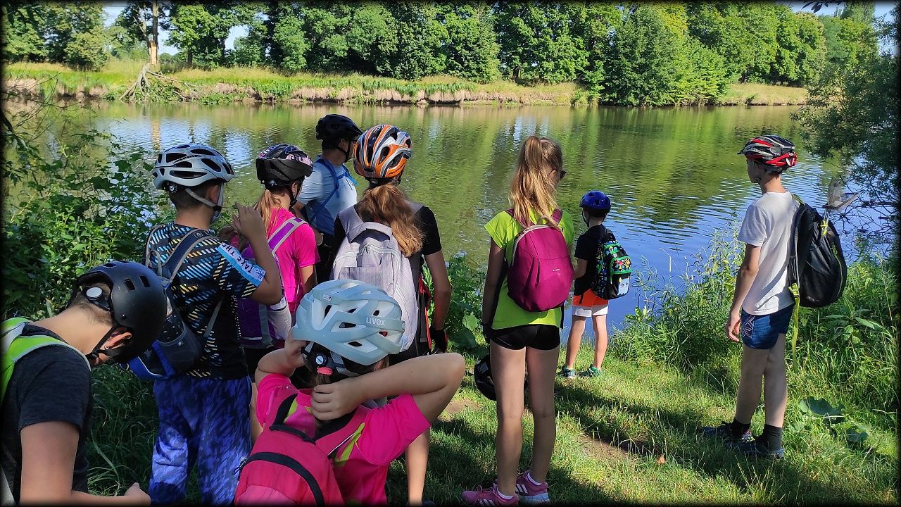 ÚTERÝ: Vydali jsme se cyklostezkou podél Labe na Vysokou zjistit, jak čistá voda vytéká z čističky odpadních vod pro Hradec Králové a jaká rostlinka se v minulosti používala jako náhražka za prací prášek při praní prádla. Čekal nás kopec na rozhlednu Milíř. Užili jsme si krásný výhled až na Sněžku a zahráli si hru "Ptáčata". Pak, cestou lesem na Biřičku, jsme si vyzkoušeli zaťukat na dendrofon. Raci na Biřičce se před námi pro tentokrát schovali. K obědu byl kuřecí závitek a hranolky. Při jízdě do Hradce jsme se naučili, proč se cestě říká Smiřická hráz.