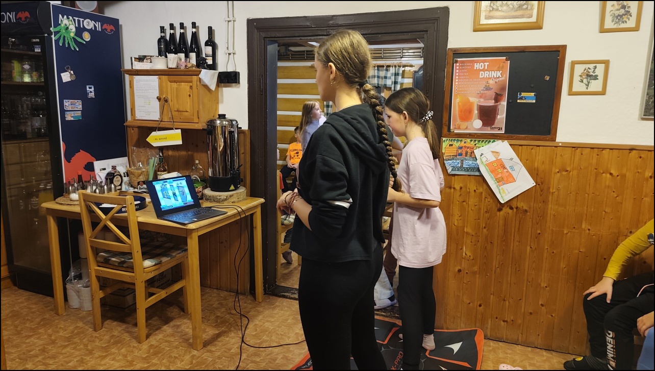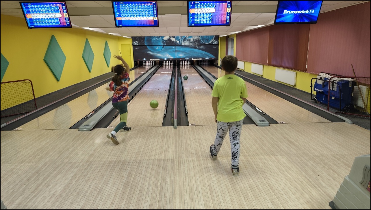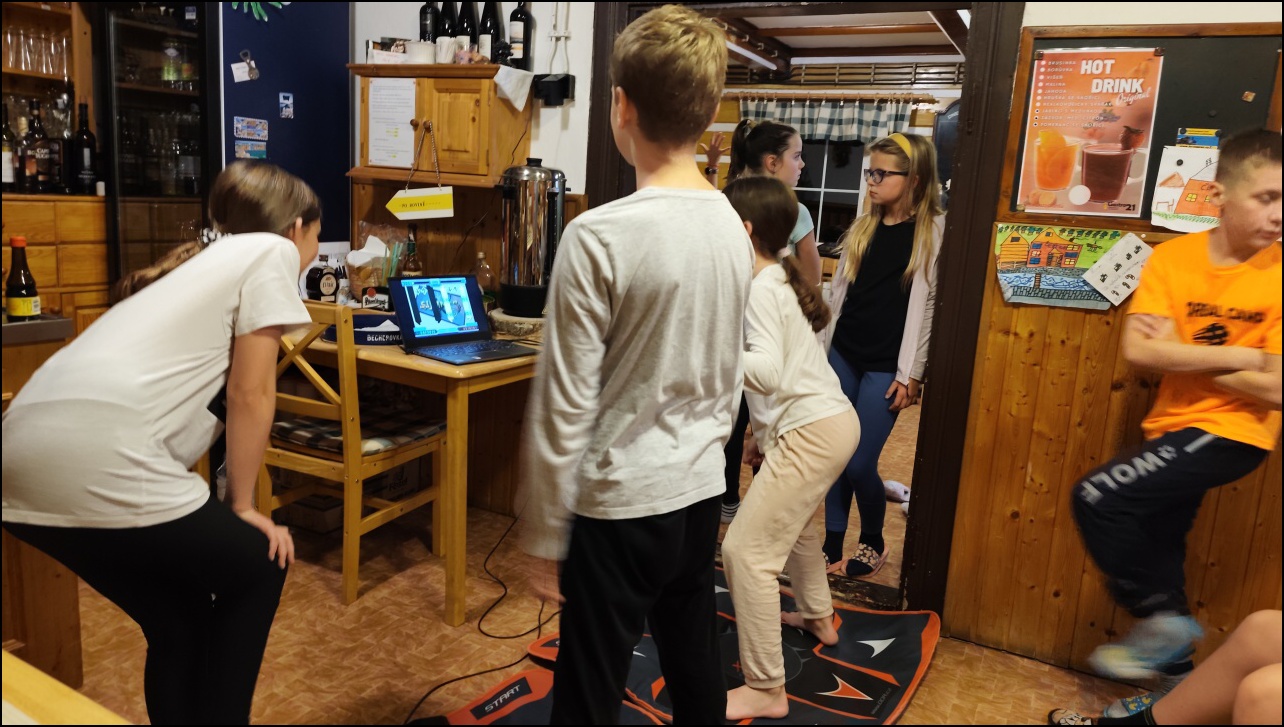 Dnešní propršený den jsme zvolili program uvnitř. Dopoledne jsme zdolávali různé trasy na horolezecké stěně. Všichni to zvládli bez větších problémů. Po obědě nás čekal bowling. Na 3 drahách jsme mohli vidět velice pěkné výkony. Všechny děti si odpolední program užily a měly radost ze poražených kuželek. Po večeři, úklidu pokojů a balení věcí si děti zařádily při hře Just dance a na tanečních podložkách. Poslední večer jsme tak tak užili spoustu srandy, tance a zábavy.