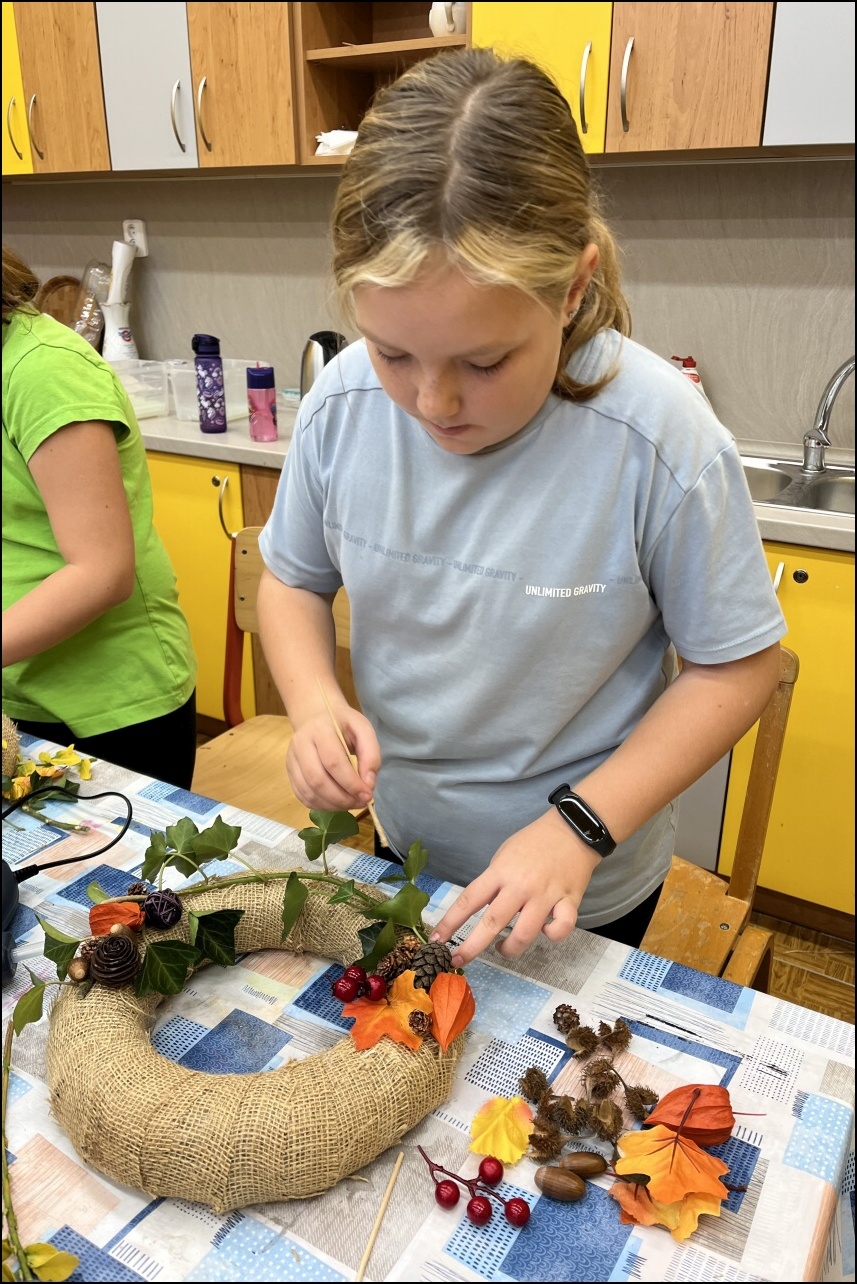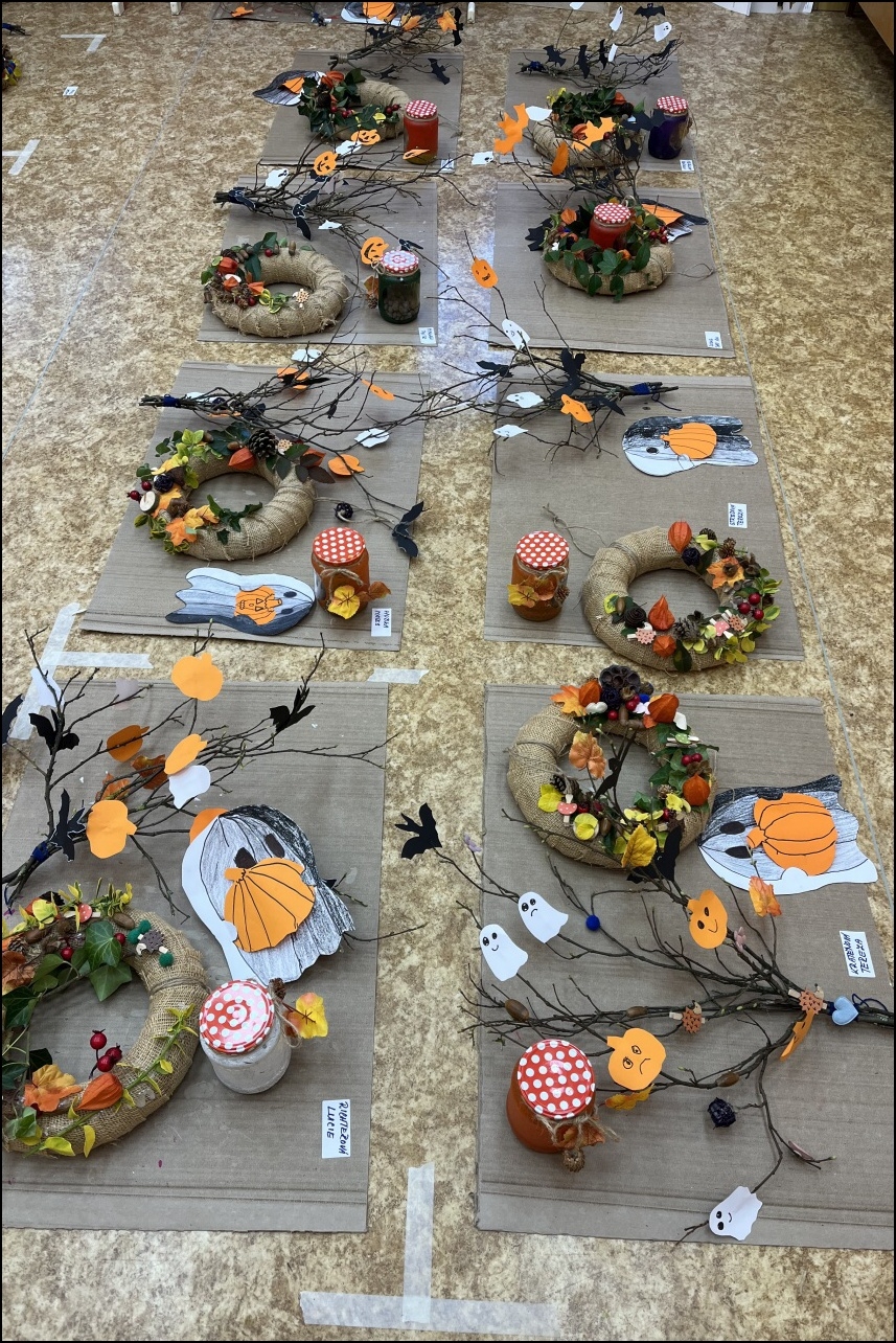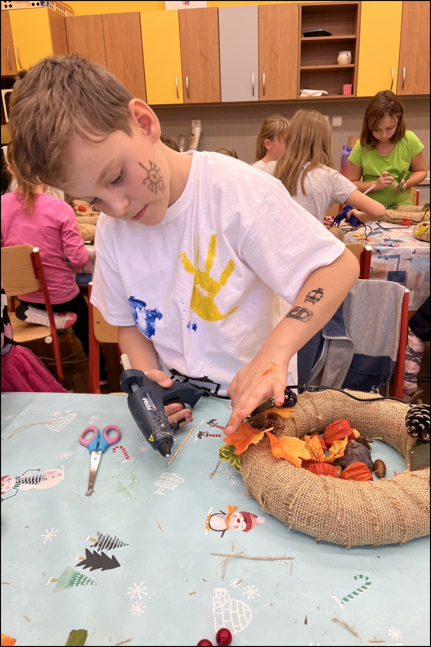 Den plný kreativity a zábavy, kdy měly děti možnost vyzkoušet si různé výtvarné techniky a vytvořit originální podzimní a Halloweenské dekorace. Program začal výrobou podzimních sklenic na svíčky, které po zapálení vrhaly krásné, teplé světlo. Děti se s nadšením pustily do výroby podzimních věnců, které zdobily listy, šiškami a dalšími přírodninami, čímž vznikly unikátní dekorace k zavěšení.