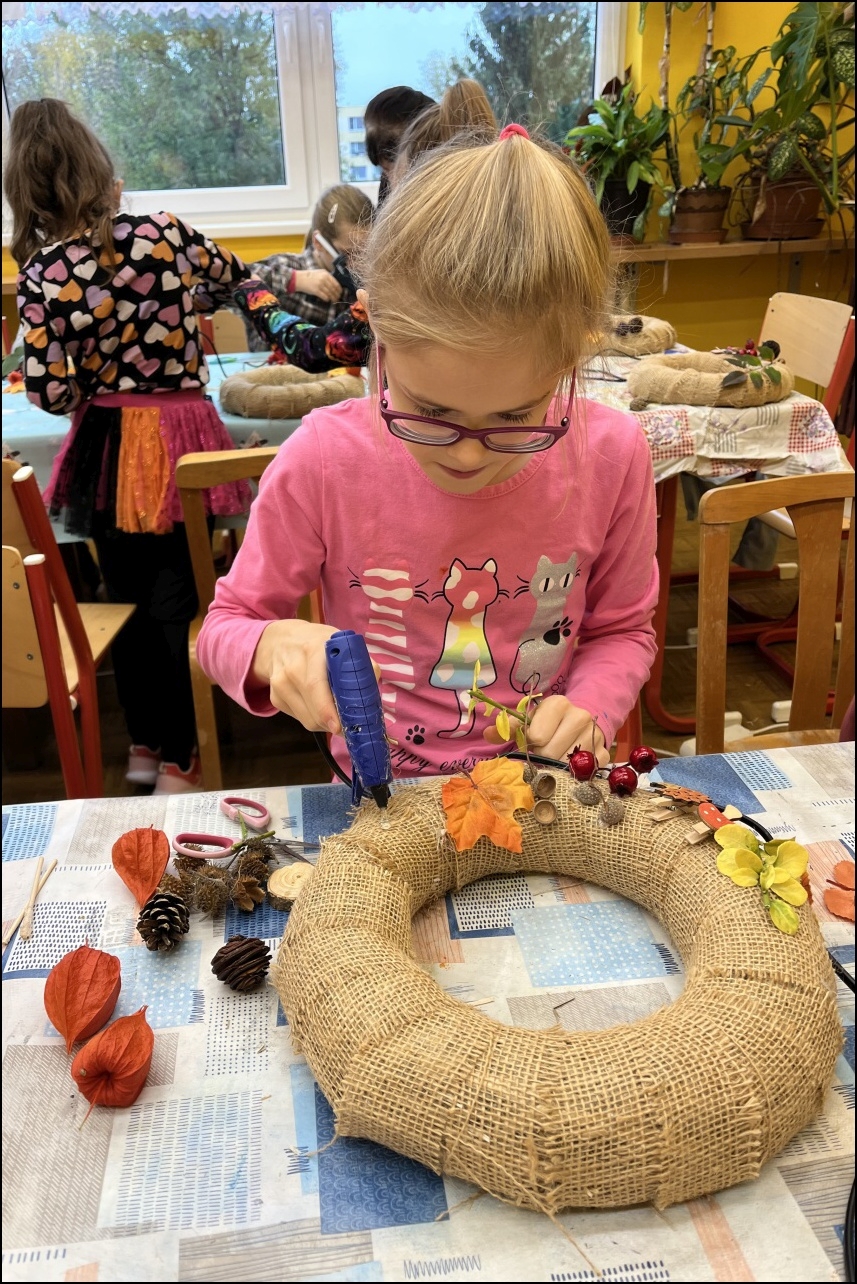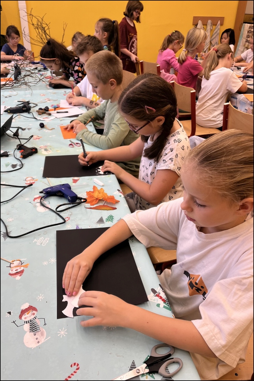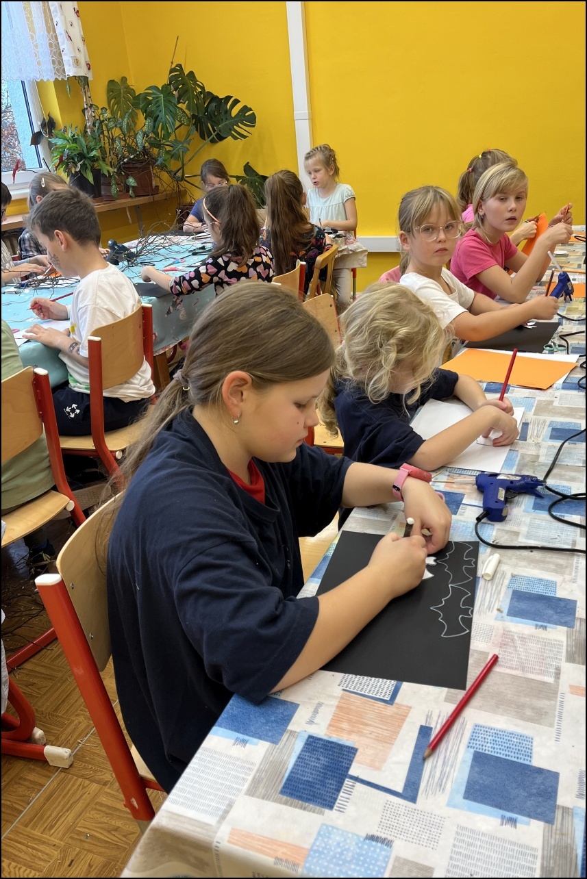 Den plný kreativity a zábavy, kdy měly děti možnost vyzkoušet si různé výtvarné techniky a vytvořit originální podzimní a Halloweenské dekorace. Program začal výrobou podzimních sklenic na svíčky, které po zapálení vrhaly krásné, teplé světlo. Děti se s nadšením pustily do výroby podzimních věnců, které zdobily listy, šiškami a dalšími přírodninami, čímž vznikly unikátní dekorace k zavěšení.