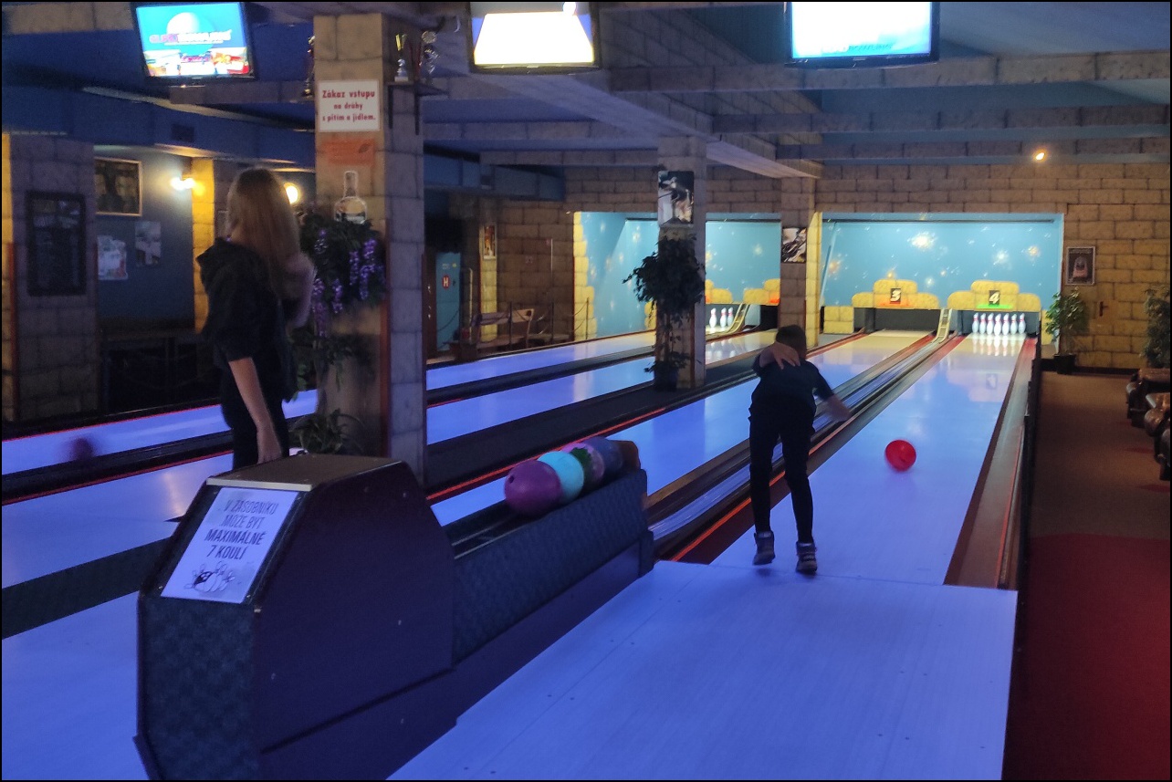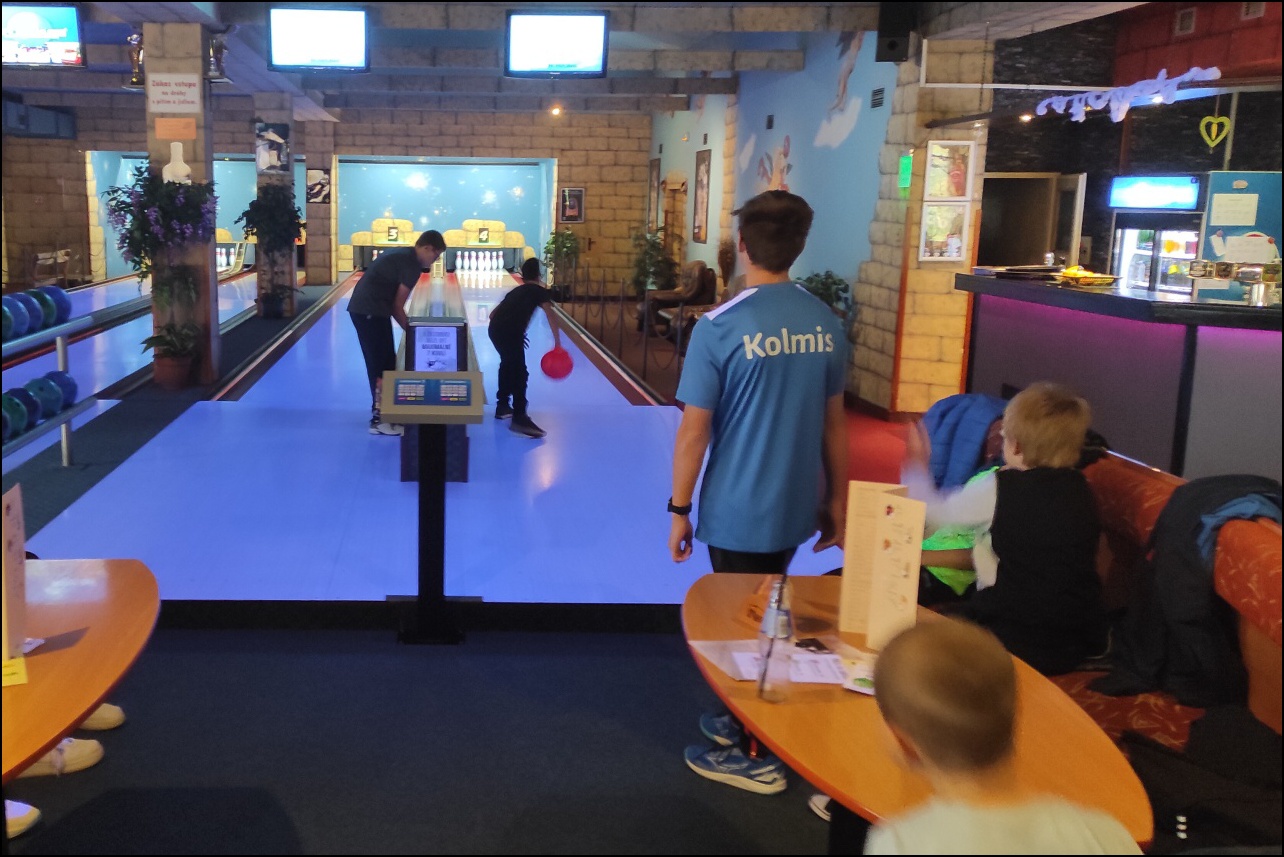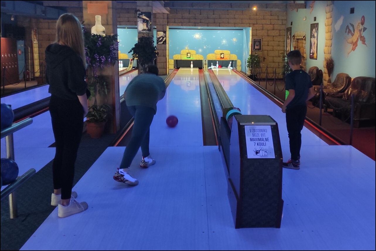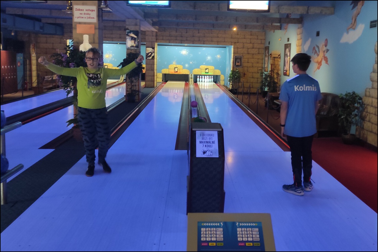 V tento den zároveň vyjel kroužek atypických sportovních aktivit do nedaleké Jaroměře, aby si děti vyzkoušely netradiční sportovní aktivitu - BOWLING. S přihlédnutím na zkušenosti s touto disciplínou musíme všechny pochválit za předvedenou hru.