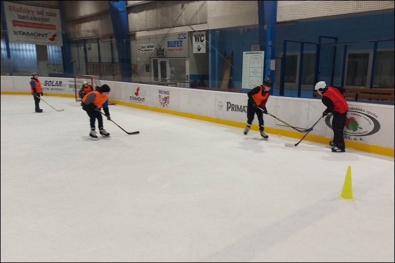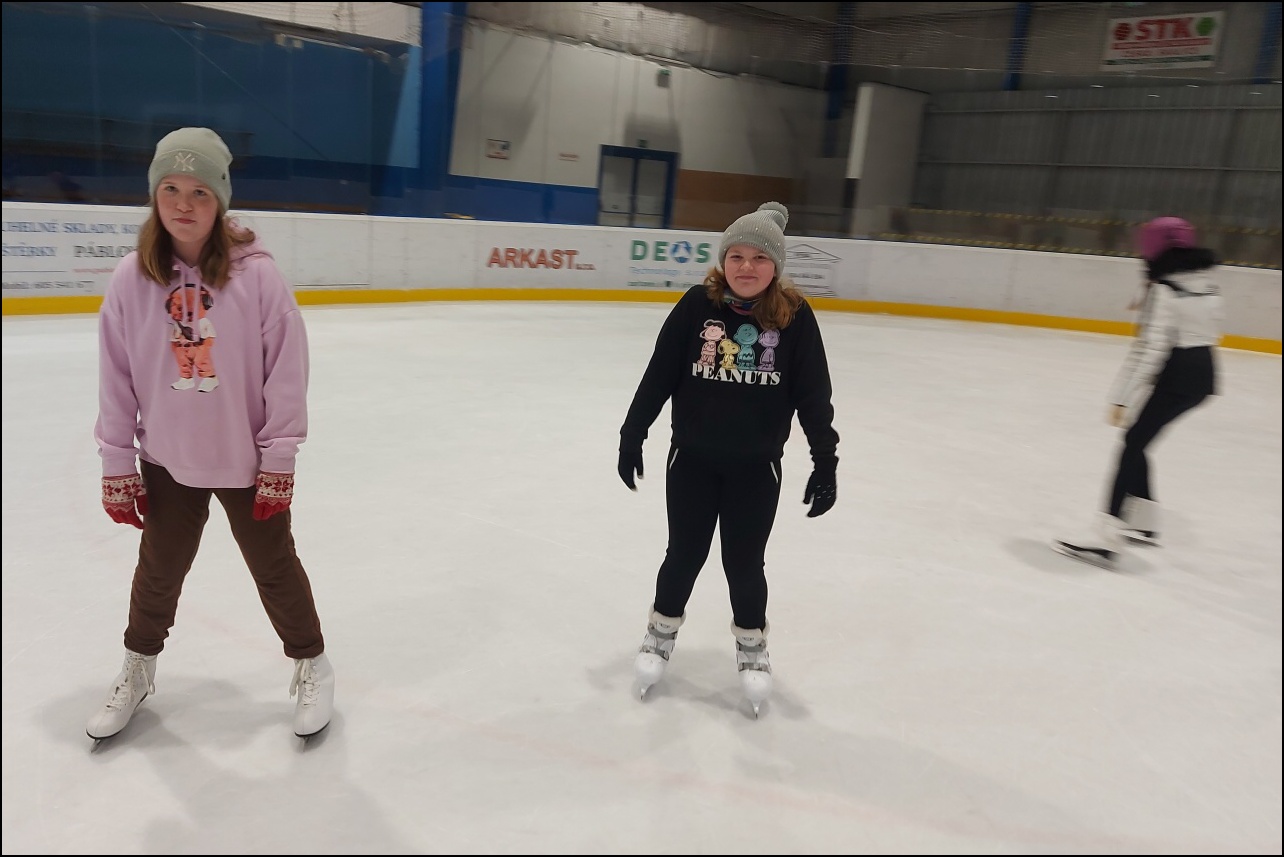 Na pololetní prázdniny jsme tento rok opět zařadili bruslení na zimním stadionu v Jaroměři. Zde jsme měli pro sebe celou ledovou plochu, na které se odehrával nejen hokejový souboj, ale byl zde i prostor pro nácvik krasobruslařských kreací. Začátečníci pak mohli využít i hrazdičky pro lepší stabilitu a jistotu.