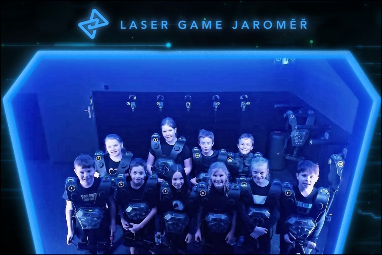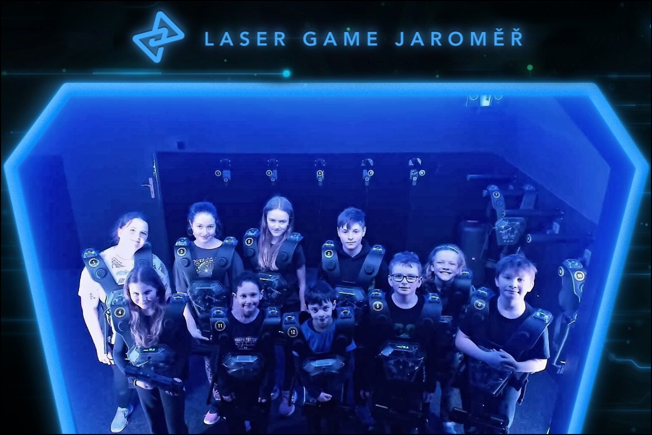 Po bruslařských výkonech jsme se přesunuli do Laser Game arény. Zde na nás čekal příjemný personál, který věem podrobně vysvětlil pravidla hry a velice hezky všechny namotivoval do hry. Každý si zahrál 3 hry, kde každá měla trochu jiná pravidla a styl. Začali jsme hrou všichni proti všem. Následovala hra na dva týmy - při těchto hrách jsme měli osvětlené překážky a bylo celkem dobře vidět na cestu. Poslední hru nám však překážky nesvítily a byli jsme odkázáni pouze na baterku na zbrani. Každá skupina si pak vybrala, zda chtěla hrát ve dvou nebo ve více týmech.