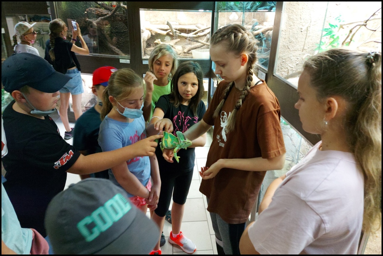 Pondělí jsme začali pohodovým výletem do Hradce Králové, kde nás čekala prohlídka přírodovědného centra. Zde děti viděli spoustu exotických zvířat. Některé z nich si následně děti mohly pohladit, nebo vzít do rukou. Odpoledne bylo na programu Planetárium, ve kterém jsme si vyslechli přednášku o jednotlivých planetách a viděli jsme dokumentární video Polaris.