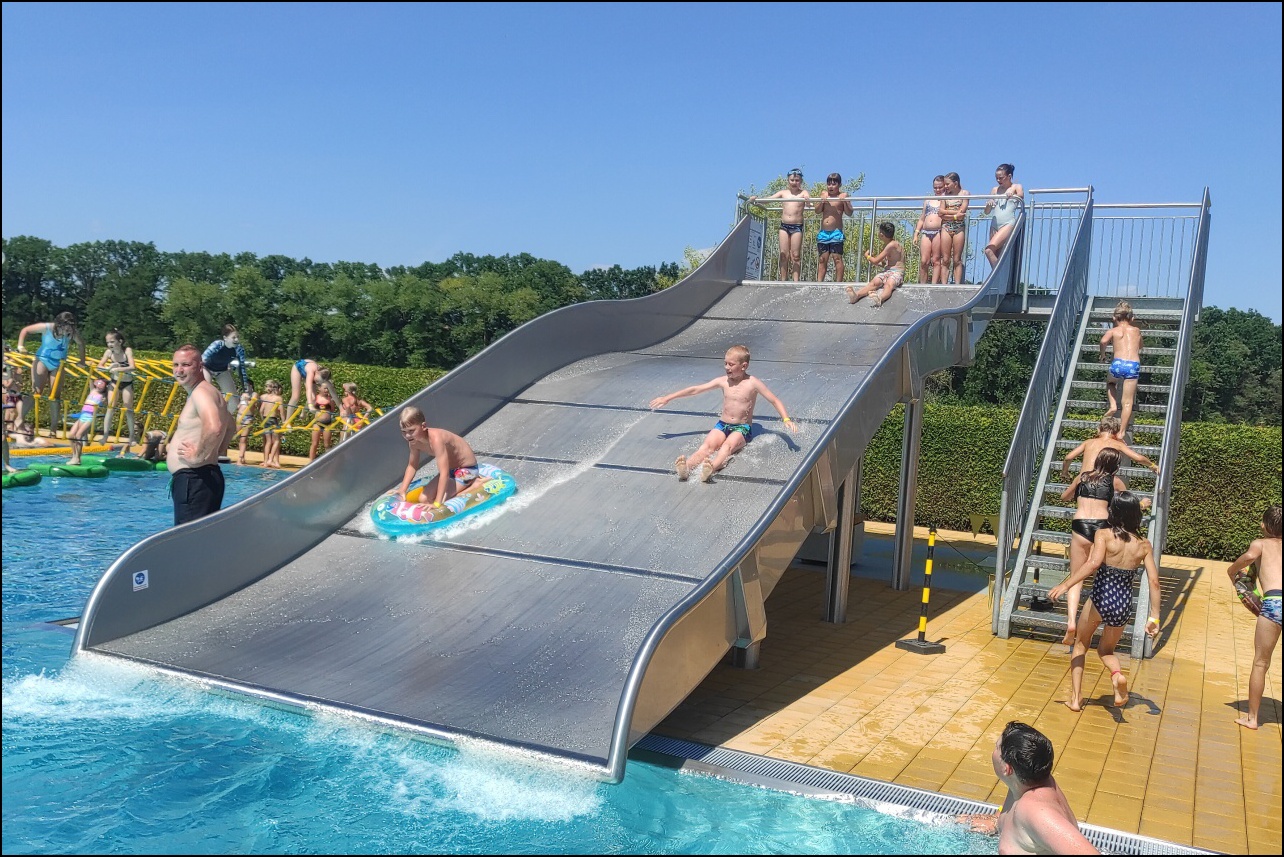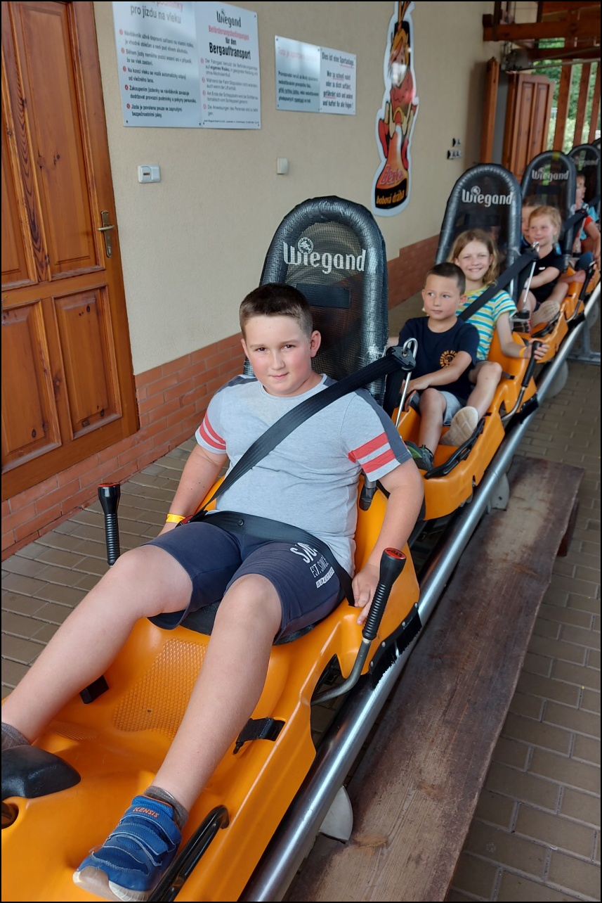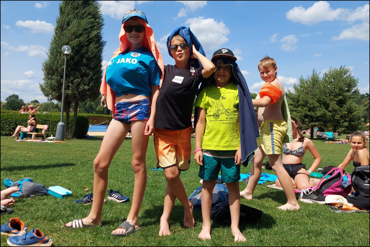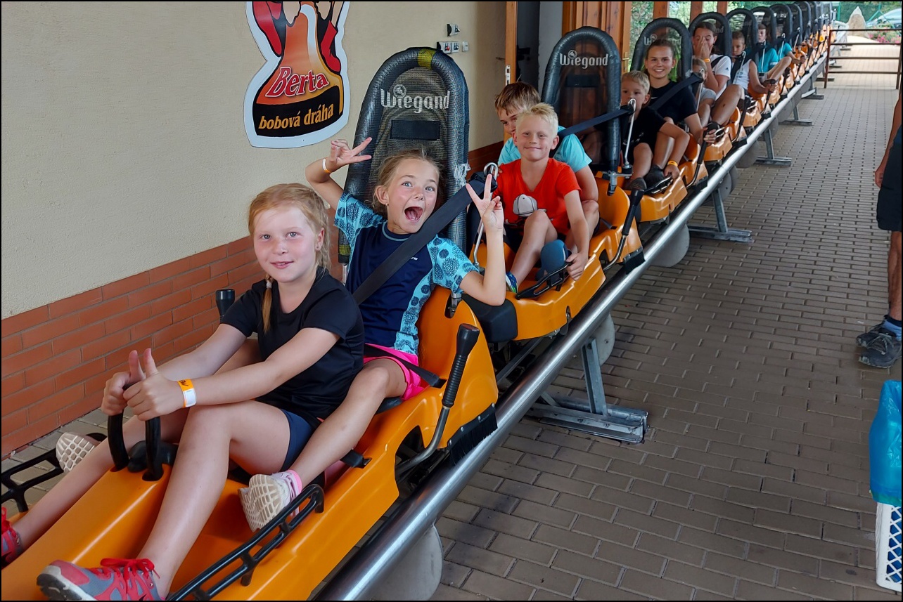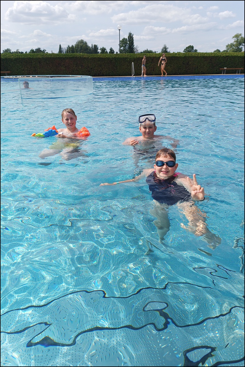 Nově zrekonstruovaný bazén, který většina dětí ještě neznala. byl pro všechny jedním velkým překvapením. Příjemné prostředí, zábavné prolézačky ve vodě a skvělá skluzavka se zasloužili o to, že si skotačení ve velkých vedrech všichni velice užili a určitě jsme toto koupaliště nenavštívili naposledy.