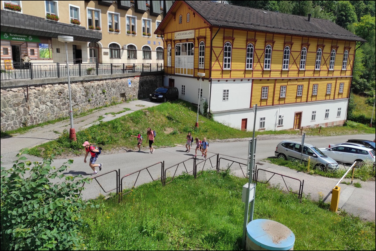 Jediný turistický výlet celého týdne. Poslední vlaková zastávka tímto směrem končí ve stanici Svoboda nad Úpou. Odtud jsme se vydali po turistické stezce do Janských Lázní. Zde následovala zasloužená odměna v podobě výborné zmrzliny v cukrárně pod náměstím. Krátkou cestou směrem zpět do Svobody jsme se dostali až do Farmaparku Mochomůrka, kde děti mohly vidět několik zvířat (koně, krocana, prase, slepice, ovce, kozy, klokana, králíky,...), nebo si pohrát na hřišli pro basketbal a florbal, nebo na pískových hřištích.