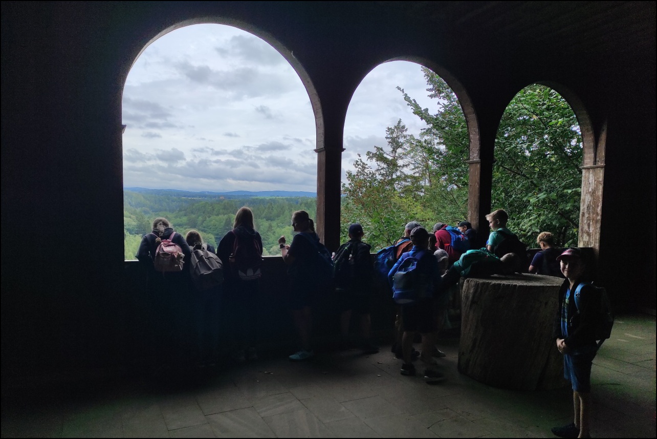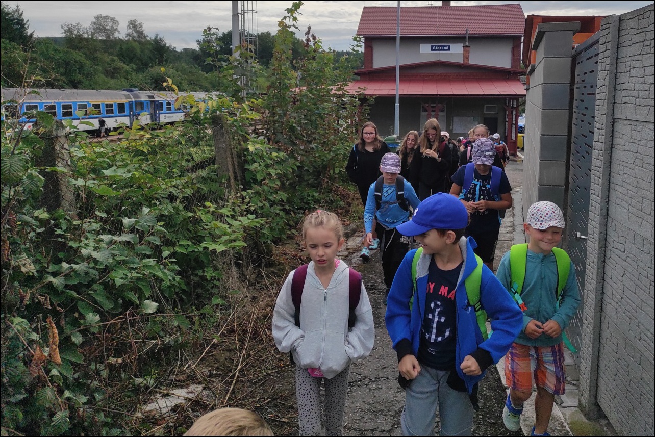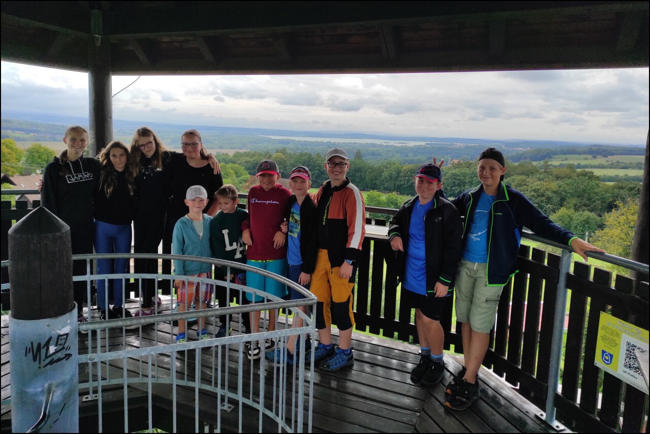 První den tábora nás čekal pěší výlet za poznáním části kraje Boženy Němcové. Z vlakové stanice Starkoč jsme se vydali do Žernova. Zde jsme vylezli po 92 schodech na rozhlednu. Díky počasí jsme mohli vidět nejen Rozkoš, ale i Sněžku a další hory. Prolezli jsme zříceninou hradu Vízmburk a už se blížili babiččiným údolím ke splavu. Prošli jsme si údolím, nakoupili suvenýry a dali si oběd v restauraci Viktorka. Zpátky vedla cesta kolem zámku Ratibořice, okolo studánky Bažantice až na nádraží v České Skalici. Celkem jsme nachodili okolo 13km a všichni to zvládli naprosto s přehledem.