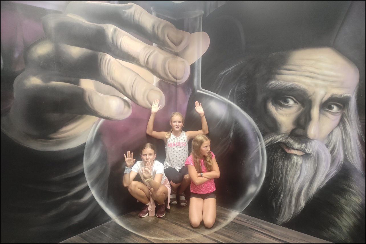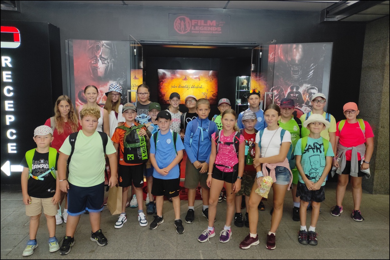 Výlet do Prahy začal po příjezdu poněkud rozpačitě, jelikož v muzeu filmu došlo ke ztrátě naší rezervace. Navštívili jsme tedy muzeum filmových legend, které se nacházelo kousek od Václavského náměstí. I tento improvizovaný program děti zaujal. Mohly se zde setkat s různými postavami od Marvel, komiksů, filmovým postavami z filmů jako Harry Potter, Star Wars, Pan prstenů, Terminátor a spoustu dalších. Jelikož jsme měli před obědem ještě chvíli čas, zašli jsme se podívat na Staroměstské náměstí. Bylo chvíli před 12 hodinou, takže jsme při odbíjení měli možnost vidět orloj v celé své kráse. Po obědě jsme se přesunuli do muzea fantastických iluzí. Zábava s optickými klamy byla opravdu ohromná. Děti si zde udělaly spoustu zajímavých fotek díky speciálním malbám na stěnách i na zemi. Na závěr jsme se trochu ochladili zmrzlinou v Hradci při čekání na vlak domů. Náročný a teplý den jsme nakonec zvládli a už nás čekal jen páteční odpočinek na koupališti.