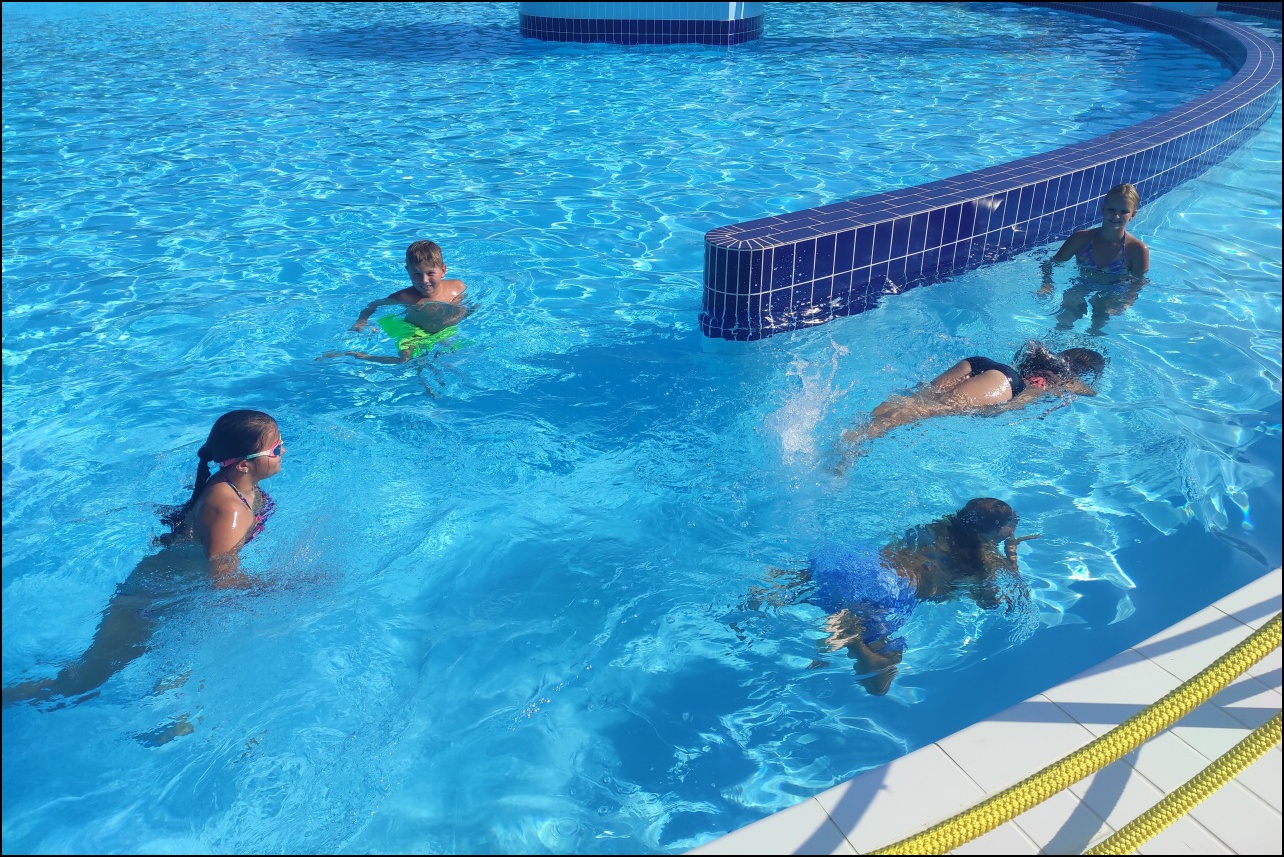 Poslední den jsme oproti původnímu plánu zařadili nově zrekonstruované koupaliště Cihelna v Pardubicích. Děti si užily spoustu zábavy na tobogánech, skluzavkách, skokancích, protiproudu nebo bazénech s chrliči a vodními přepady. Během pauzy na dece si někteří zahráli fotbal a někteří házeli frisbee. Zakončili jsme tak skvělý týden se skvělými dětmi a teď už pravou nohou vykročit úspěšně do nového školního roku.