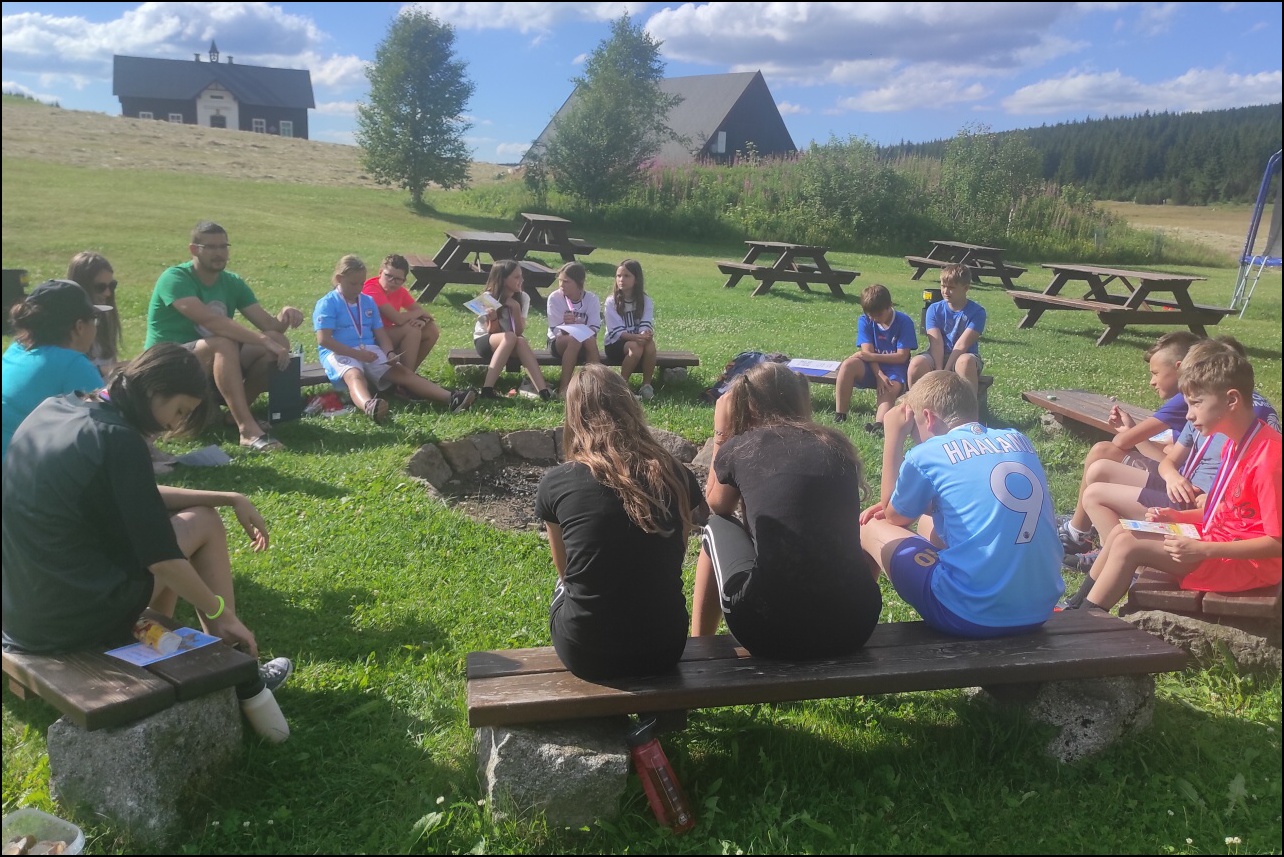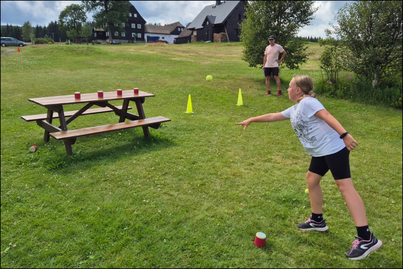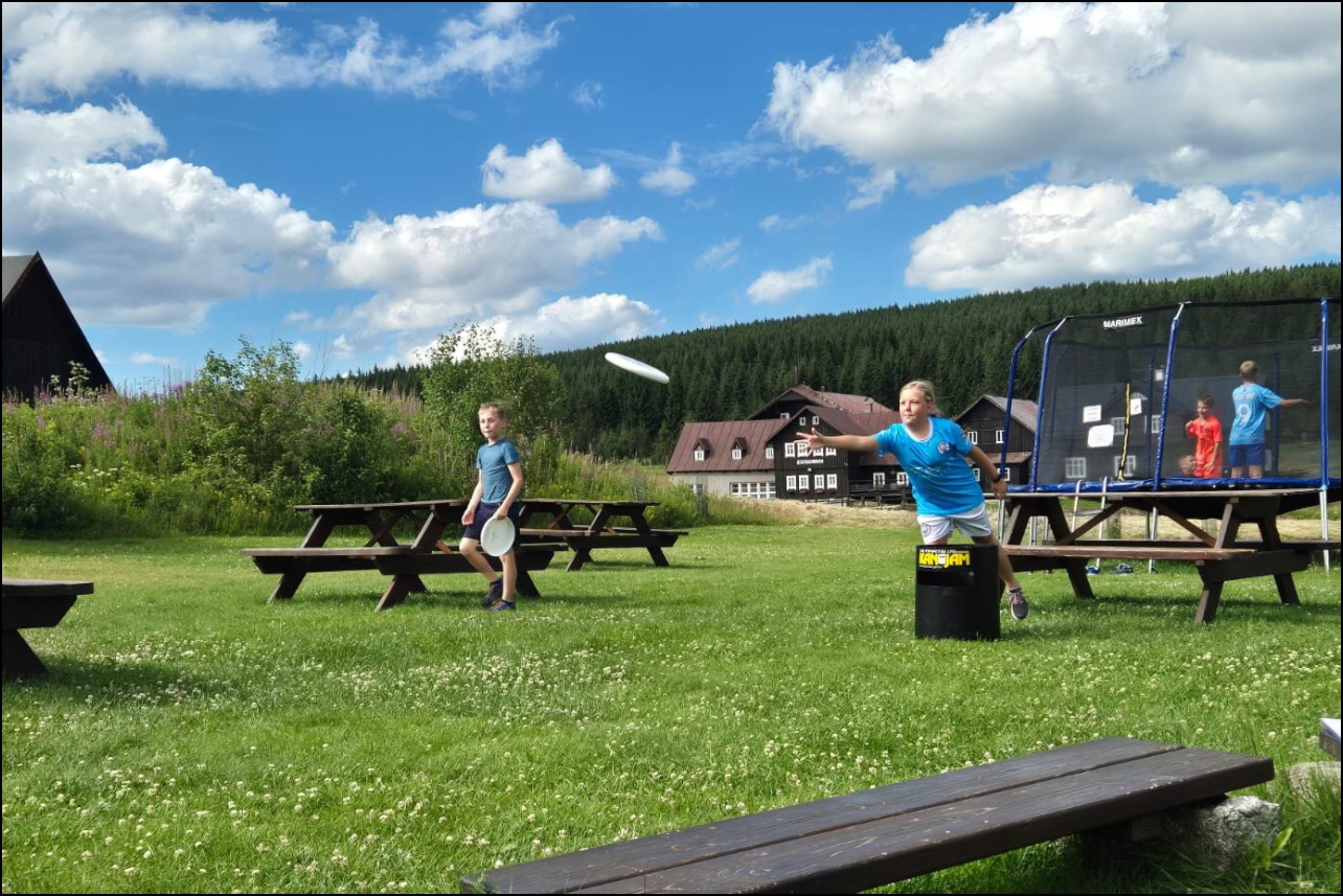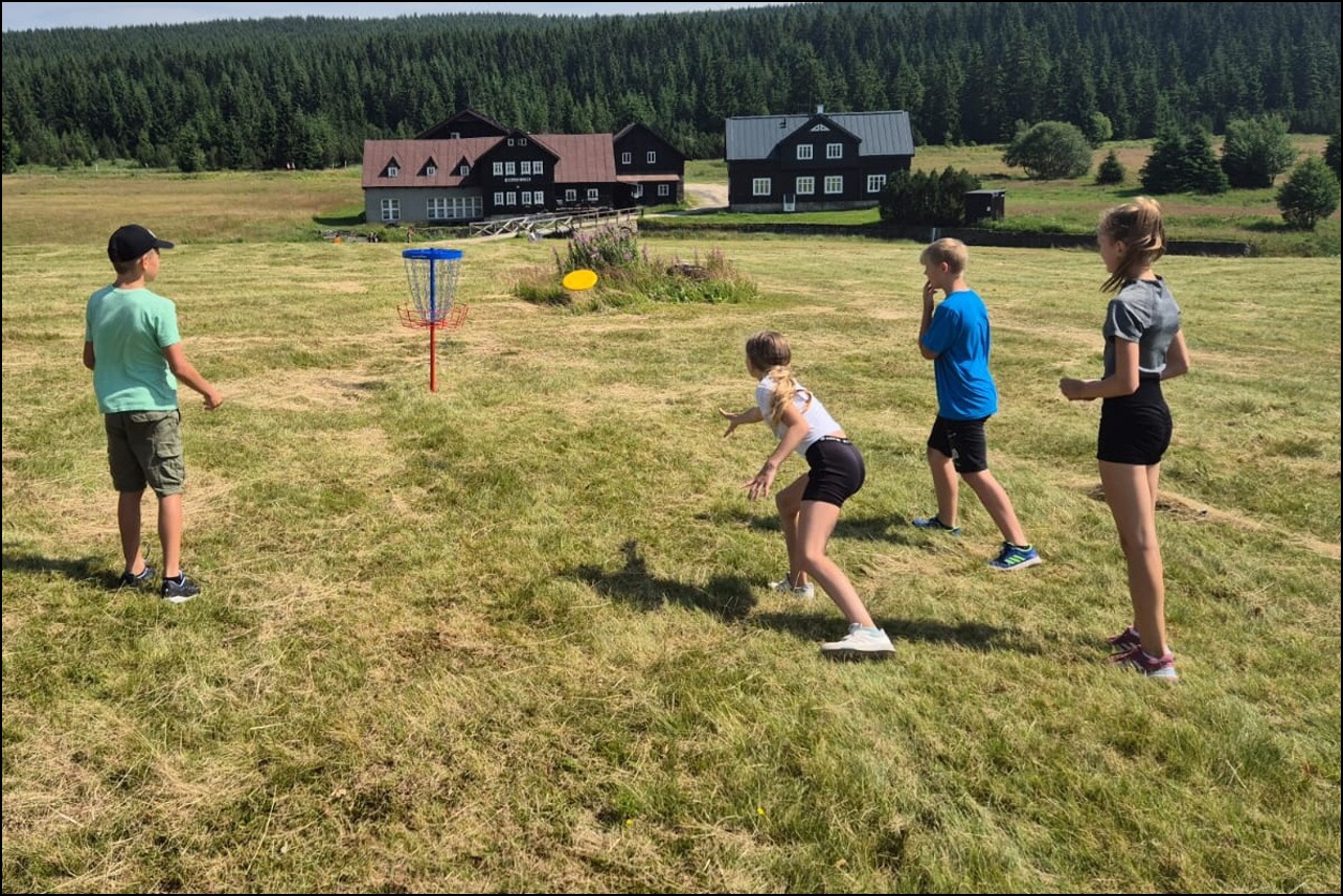 Celkem 16 statečných sportovců s námi odcestovalo do Jizerských hor, kde nás čekalo spoustu sportovních aktivit v nádherném prostředí osady Jizerka. Ubytováni jsme byli v překrásném hotelu Pyramida. K našim aktivitám jsme mohli využít nejen louky v blízkosti hotelu, ale i velkou tělocvičnu v bývalé sklárně.