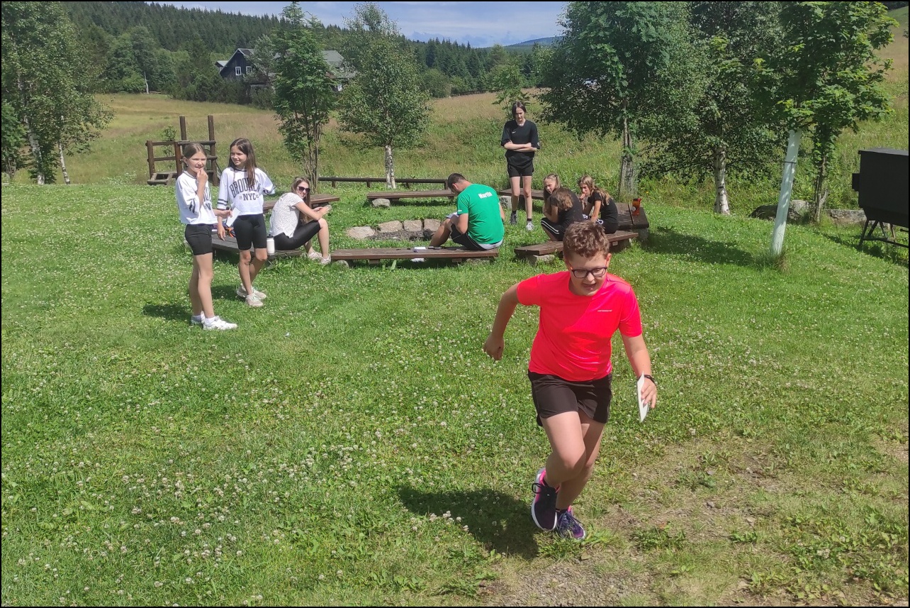 Po příjezdu do krásného prostředí osady Jizerka nás přivítalo nádherné slunečné počasí. Proběhlo ubytování, oběd a následovala první sportovní aktivita. Blízké okolí chaty Pyramida jsme prozkoumali při postřehovém závodě. Při něm děti hledaly a poznávaly symboly sportů. Nejúspěšnější 3 z celkových 3 kategorií byli odměněni diplomem, medailemi a drobnou sladkou odměnou. Večer se odehrál miniturnaj v basketbale a proběhly první lezecké pokusy na stěně.