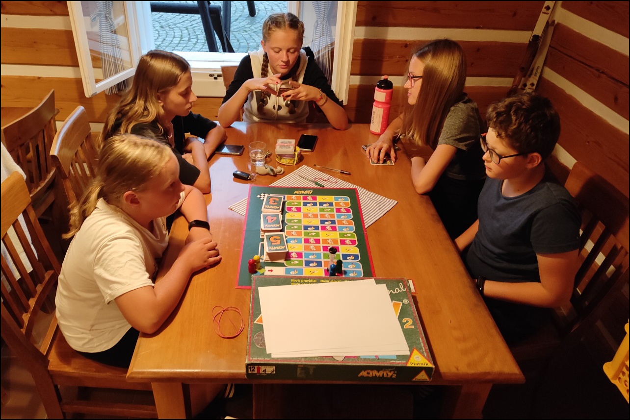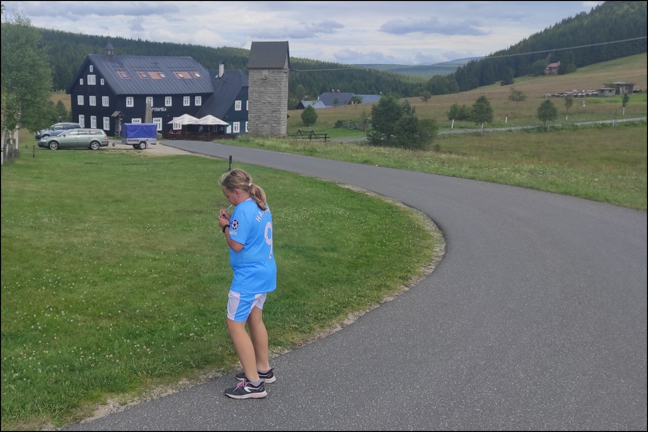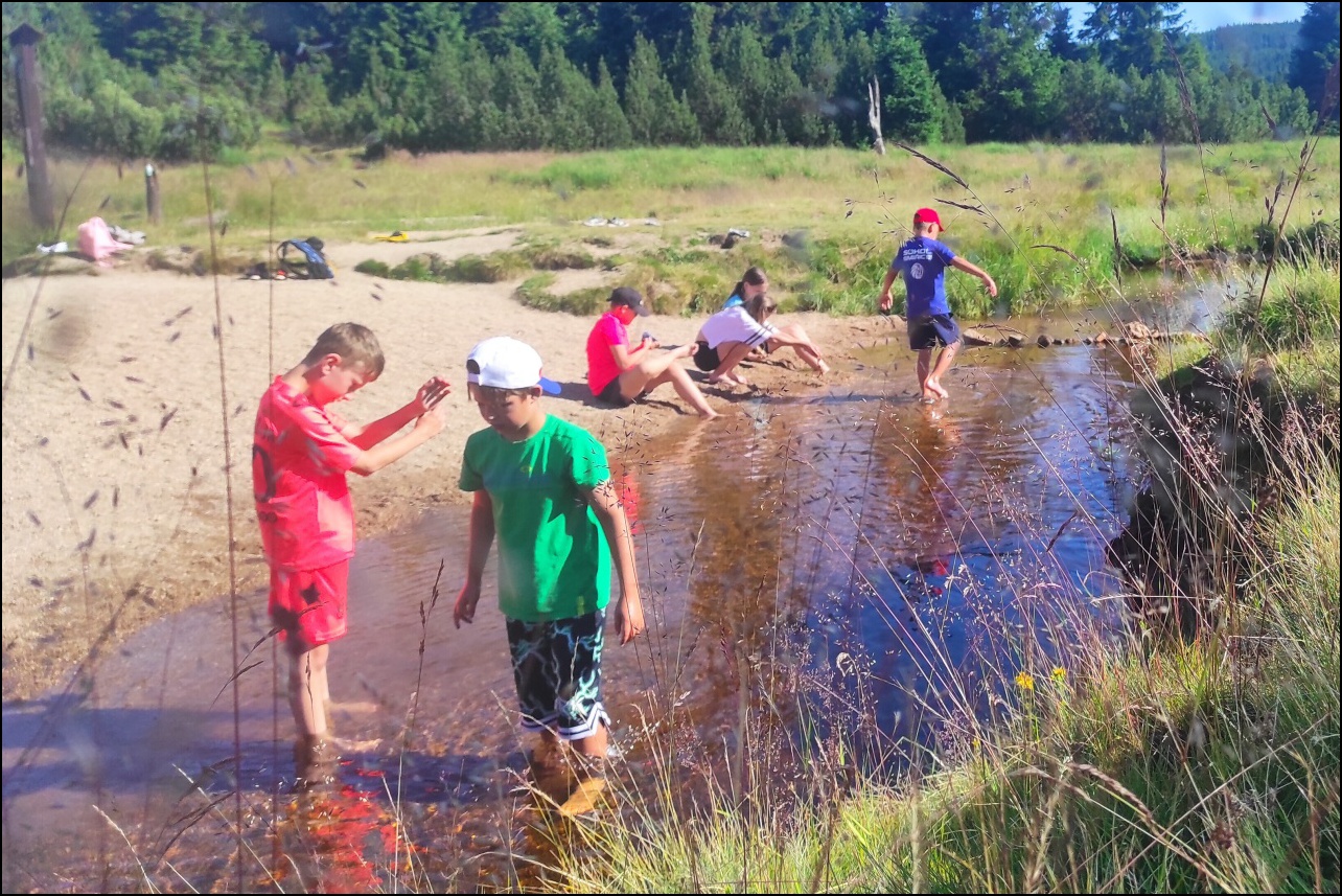 Probudili jsme se do nádherného slunečného dne, který lákal ke sportu a krátkému výletu. Dopoledne jsme si v tělocvičně zahráli pro většinu novou pálkovací hru - brännball. Pravidla zněla nejprve celkem složitě, ale po prvních minutách hry všichni pochopili, co mají dělat. Všechny sport velice zaujal a tak jsme mohli vidět velice vyrovnané zápasy plné napětí, homerunů a zaujetí. Během volna mezi zápasy si děti vyzkoušely laserovou střelnici. Po obědě nás čekal výlet přes Jelení stráň - nejvyšší bod procházky - 1018 m.n.m. na Pytlácké kameny. Zde jsme se dozvěděli původ názvu i krátký příběh o pytlákovi a pašerákovi Hennrichovi, který v těchto skalách pobýval. Při sestupu zpět na Hotel jsme se podívali na chráněnou rašeliništní oblast, kde jsme mohli vidět mimo jiné i chráněnou masožravku rosnatku okrouhlolistou. Večer jsme si v tělocvičně zahráli miniturnaj ve fotbale a opět nacvičovali střelbu s laserové pušky. Pak už hurá do postelí po náročném dni - něco málo přes 8 km pěšího výletu a pár kilometrů naběhaných v tělocvičně.