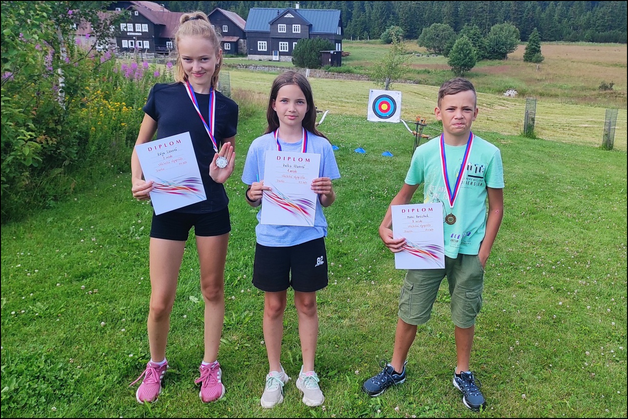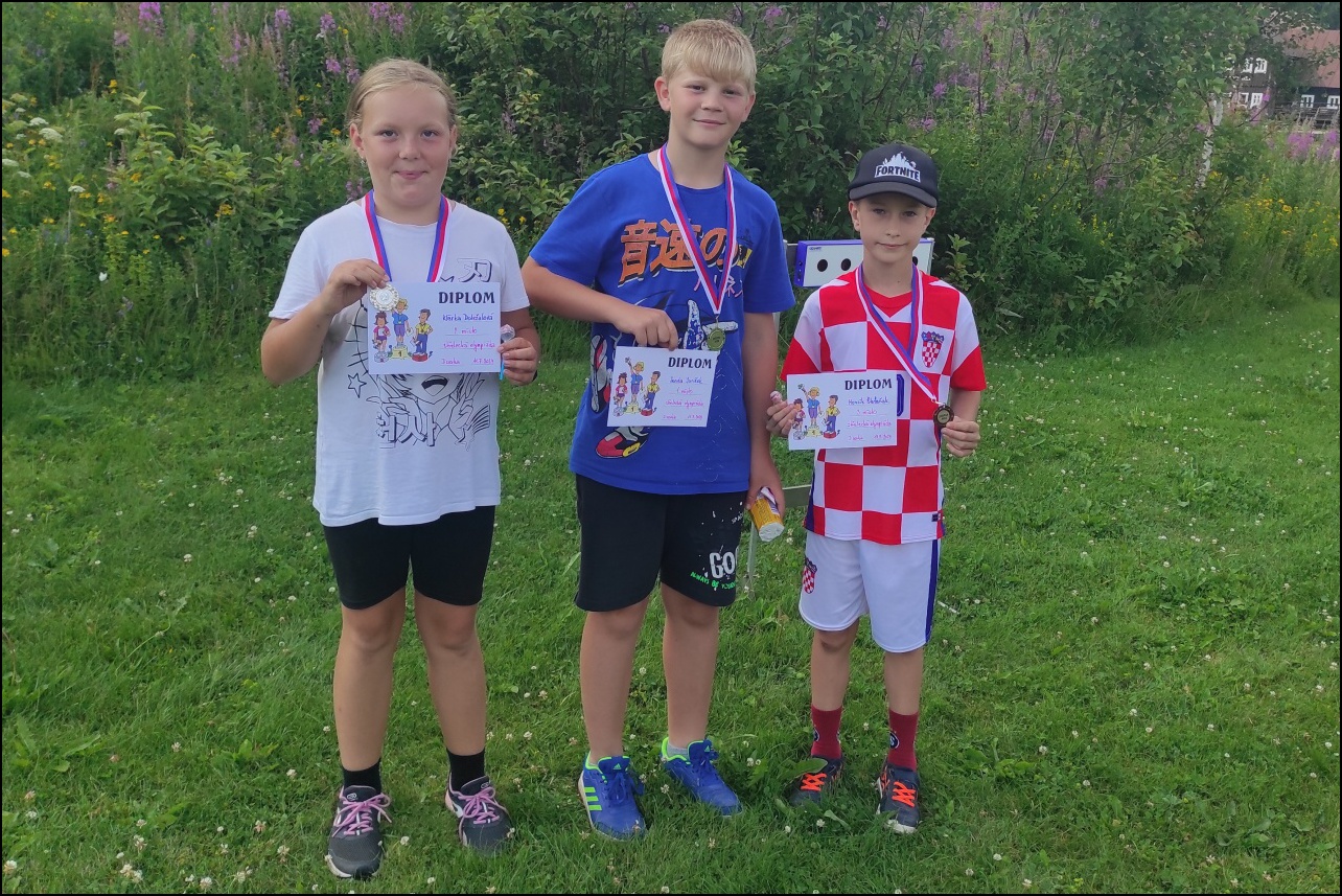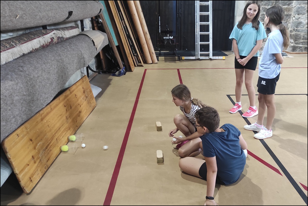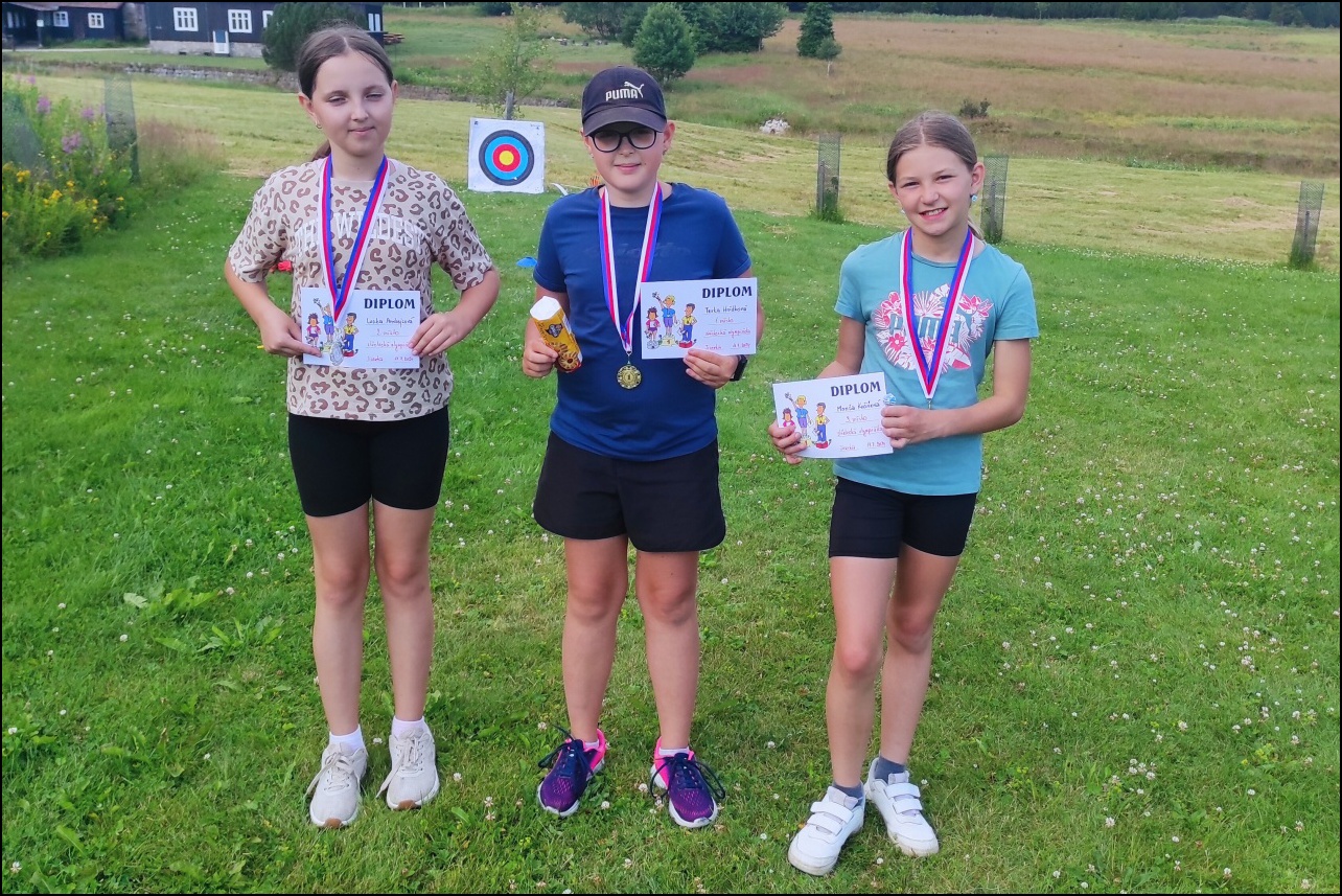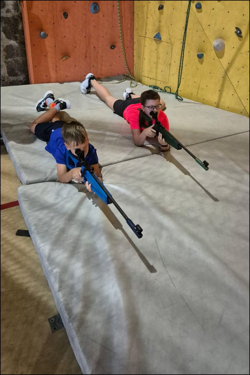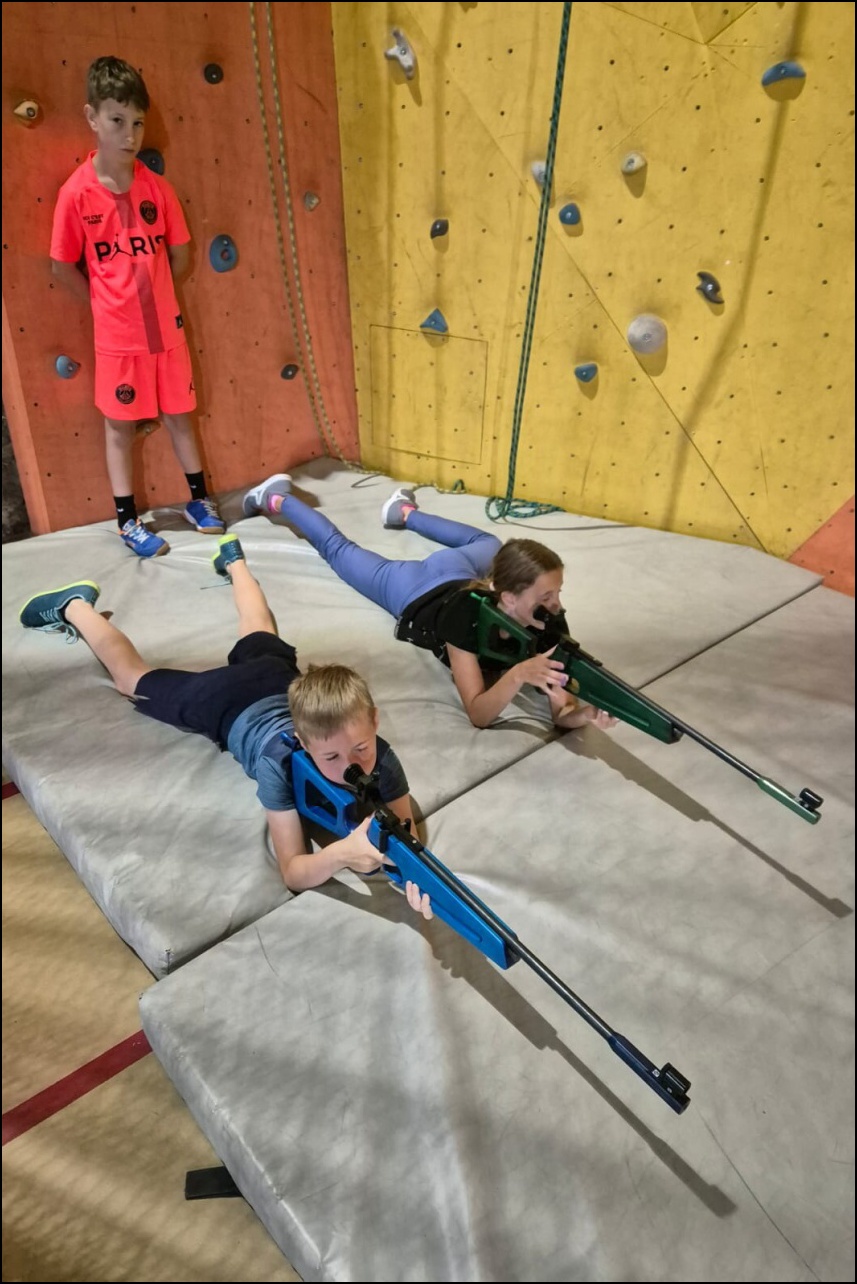 Sportovní pobyt se nám blíží ke konci a my jsme měli stále 2 sady medailí, které musely najít své majitele. Dopoledne proběhl souboj v "míčovém" osmiboji. Děti se snažily získat co nejmenší počet trestných bodů v disciplínách - kop na branku, hod tenisakem na cíl, hod na disk golfový koš, hod kolíkem na Kubb, střelba florbalovou holí na branku, cvrnkání pink ponkového míčku do kelímku, hod na koš, hod volejbalovým míčem na cíl. Po obědě nás čekala druhá medailová disciplína a to střelecké závody. Ty začaly krátkým během, po kterém následovala střelba z luku, poté opět krátké běžecké kolečko a druhá střelba, tentokráte z laserové pušky. Po předposledním kole přišel na řadu hod na cíl. Pak už jen poslední běh a hurá do cíle. Vyhlásili jsme výsledky a dále se bavili minisoutěžemi ve střelbě. Po večeři jsme déšť přečkali u x boxu a tanečních podložek. Po dešti přišel krásný večer u ohně. Opékali jsme si buřty a pečivo. Poslední večer si naše vedoucí lezeckého kroužku připravila pro děti malé překvapení formou nočního lezení s čelovkami. Jako třešničku na dortu jsme zadařili krátkou stezku odvahy z tělocvičny zpět do hotelu. "Večerku" jsme sice poněkud protáhli, děti však získaly opět spoustu zážitků.