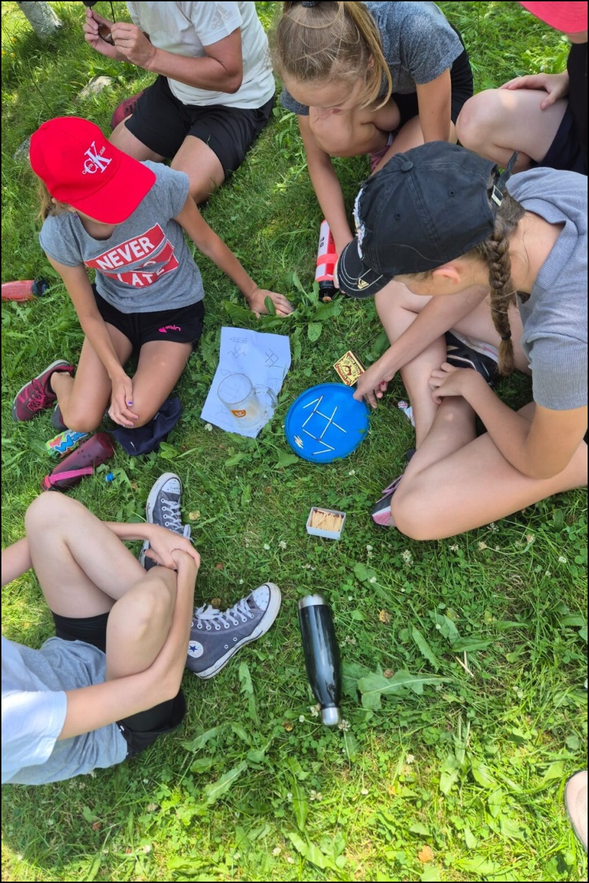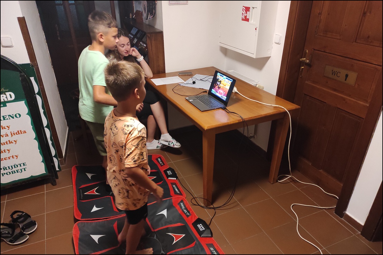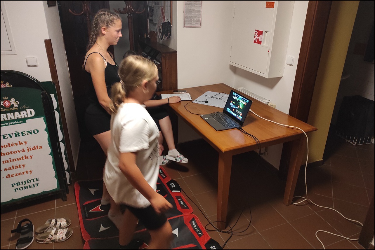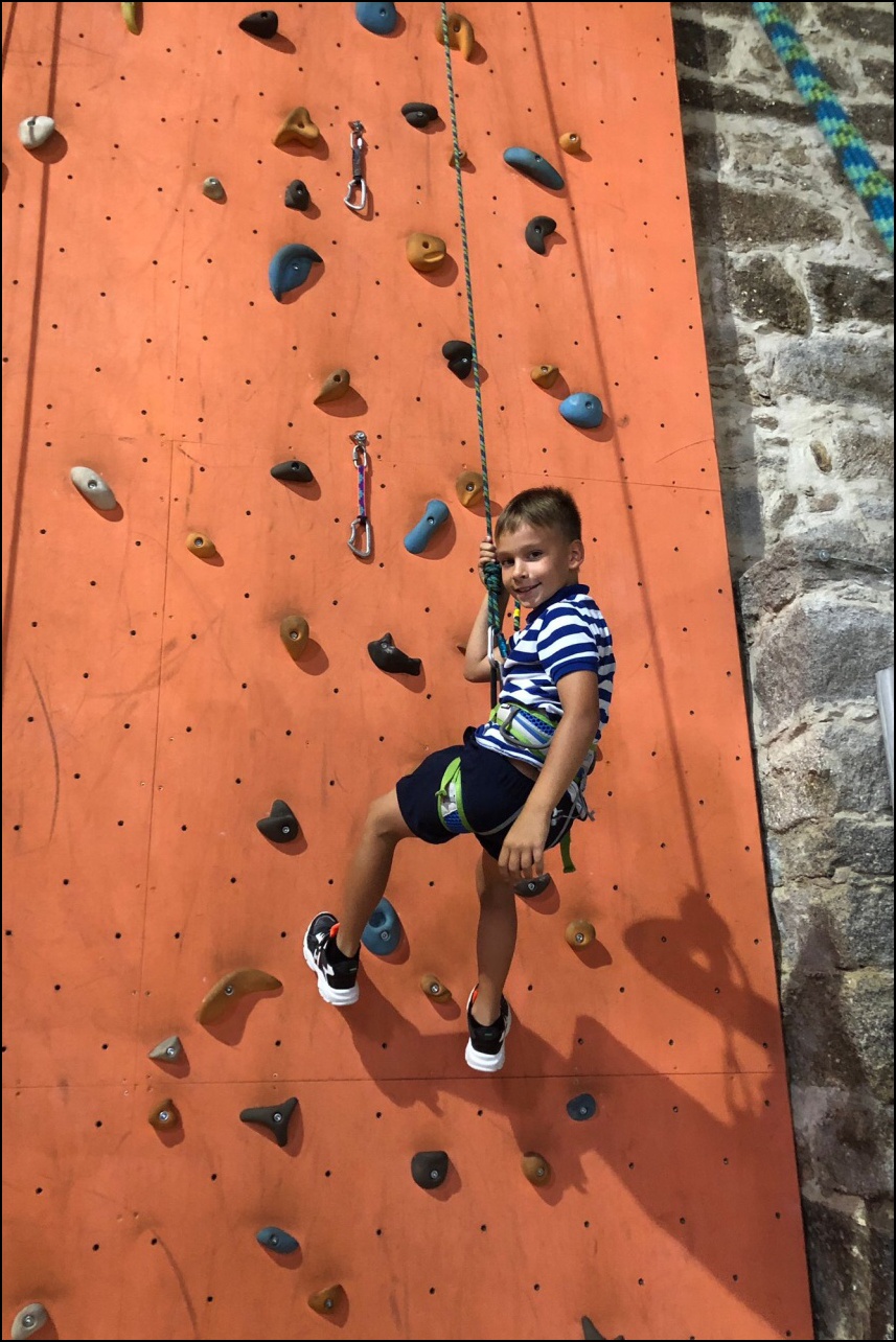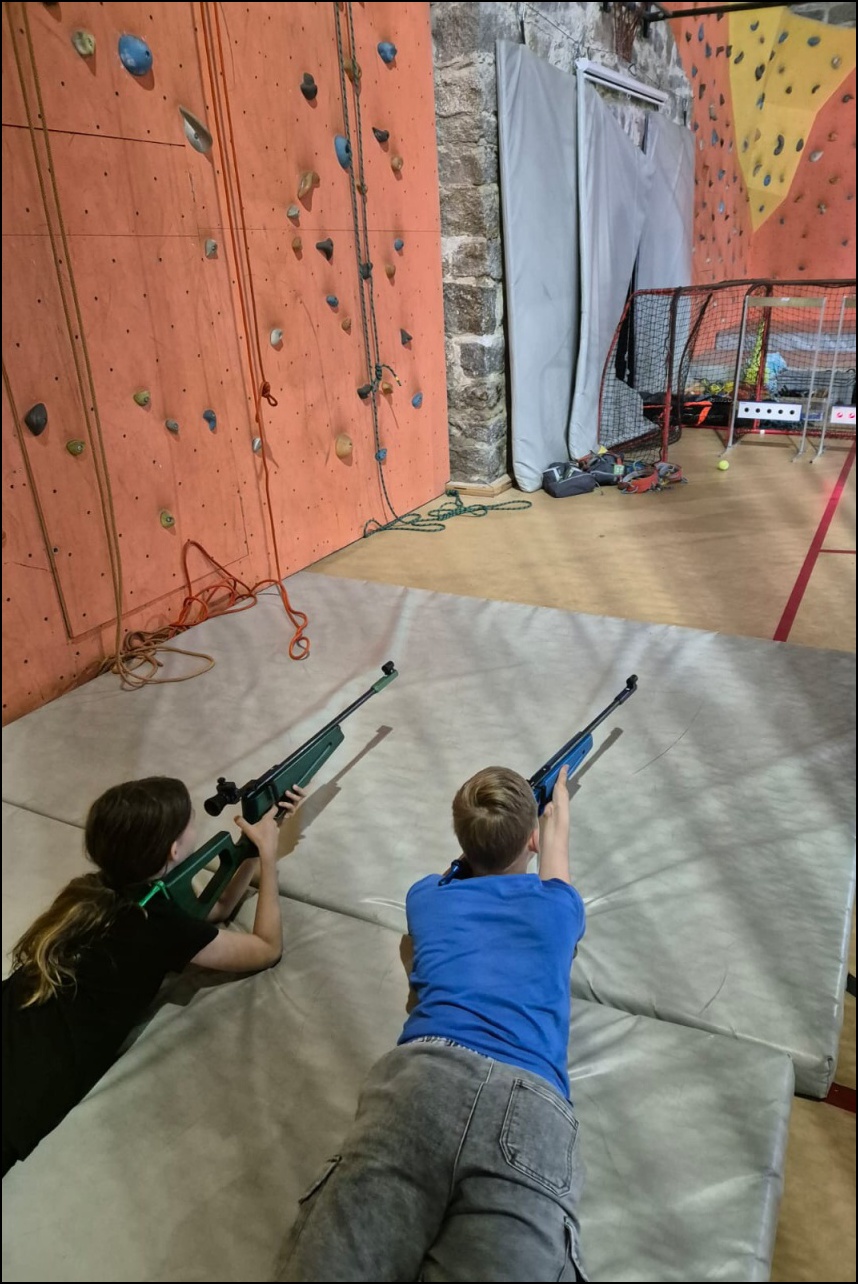 Sportovní pobyt se nám blíží ke konci a my jsme měli stále 2 sady medailí, které musely najít své majitele. Dopoledne proběhl souboj v "míčovém" osmiboji. Děti se snažily získat co nejmenší počet trestných bodů v disciplínách - kop na branku, hod tenisakem na cíl, hod na disk golfový koš, hod kolíkem na Kubb, střelba florbalovou holí na branku, cvrnkání pink ponkového míčku do kelímku, hod na koš, hod volejbalovým míčem na cíl. Po obědě nás čekala druhá medailová disciplína a to střelecké závody. Ty začaly krátkým během, po kterém následovala střelba z luku, poté opět krátké běžecké kolečko a druhá střelba, tentokráte z laserové pušky. Po předposledním kole přišel na řadu hod na cíl. Pak už jen poslední běh a hurá do cíle. Vyhlásili jsme výsledky a dále se bavili minisoutěžemi ve střelbě. Po večeři jsme déšť přečkali u x boxu a tanečních podložek. Po dešti přišel krásný večer u ohně. Opékali jsme si buřty a pečivo. Poslední večer si naše vedoucí lezeckého kroužku připravila pro děti malé překvapení formou nočního lezení s čelovkami. Jako třešničku na dortu jsme zadařili krátkou stezku odvahy z tělocvičny zpět do hotelu. "Večerku" jsme sice poněkud protáhli, děti však získaly opět spoustu zážitků.