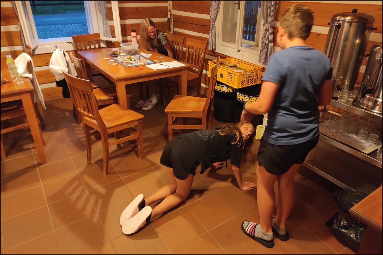 Poslední den v Jizerských horách začal slunečným ránem. Dopoledne jsme museli rychle sbalit všechny věci, protože se hotel chystal na odpolední svatbu. I tak nám ale zbylo trochu času v tělocvičně. Děti si vybraly brännball. 2 týmy po 8 sportovcích svedly nádherný souboj. Pak už jen oběd a (hurá) domů.