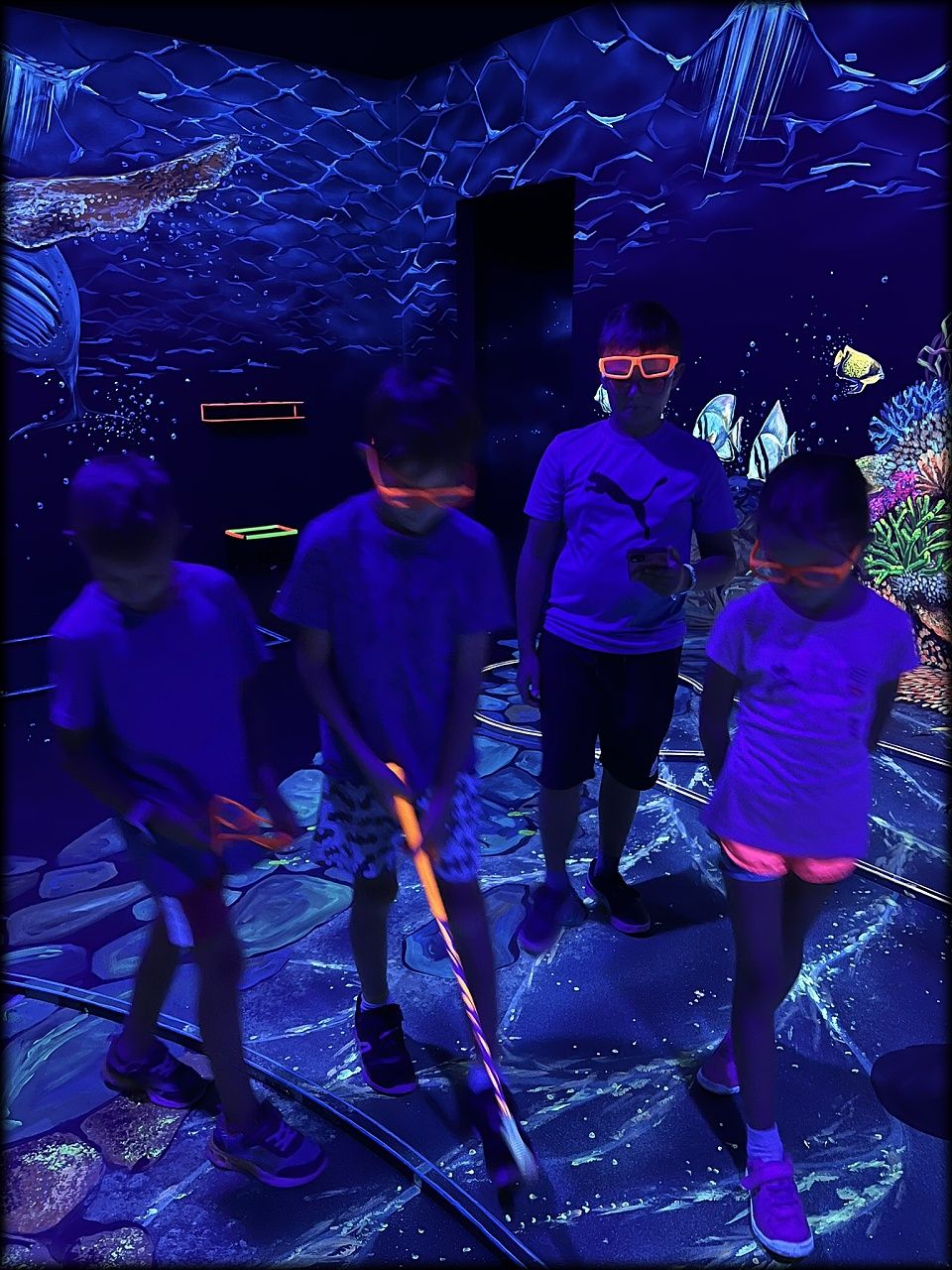 Ve středu dopoledne jsme se znovu ponořili do světa tvoření. Tentokrát se děti staly opravdovými grafickými umělci. V tento den měly děti možnost otisknout si své motivy, které vytvářely v pondělí. Podkladem se pro ně stala látková taška. Největším překvapením pro děti bylo to, když zvedly matrici a jejich výtvor se objevil na tašce. Bylo krásné sledovat jejich nadšené výrazy. Po obědě jsme se vydali do Hradce Králové, kde jsme navštívili 3D golfovou arénu. Zde děti měly možnost poměřit své síly v přesnosti a při hře využívaly speciální 3D brýle, které přidaly jejich zážitku nový rozměr. Tento den byl plný kreativních i soutěživých aktivit, které přinesly nejen radost, ale i spoustu nových zkušeností.