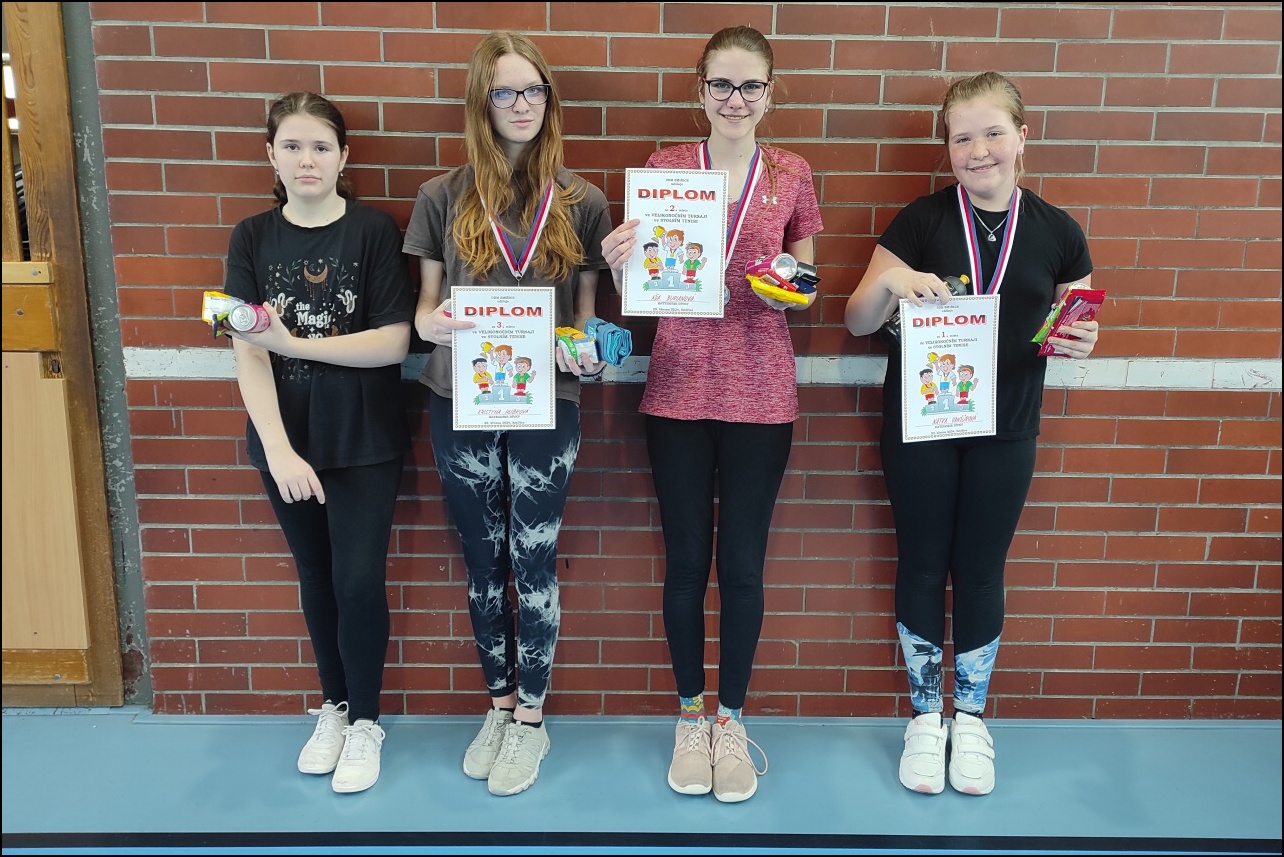 V kategorii dívek nastoupilo 5 hráček. Po odehrání základní skupiny následovalo play off, do kterého postoupily 4 nejlepší dívky. Vyřazovací boje se nejlépe vydařily Natce Vanžůrové, která ve finále přehrála Áďu Burianovou 3:2 na sety. Třeti místo pak obsadila Kristýna Hubková, která si poradila s Verčou Vondruškovou poměrem 3:1.